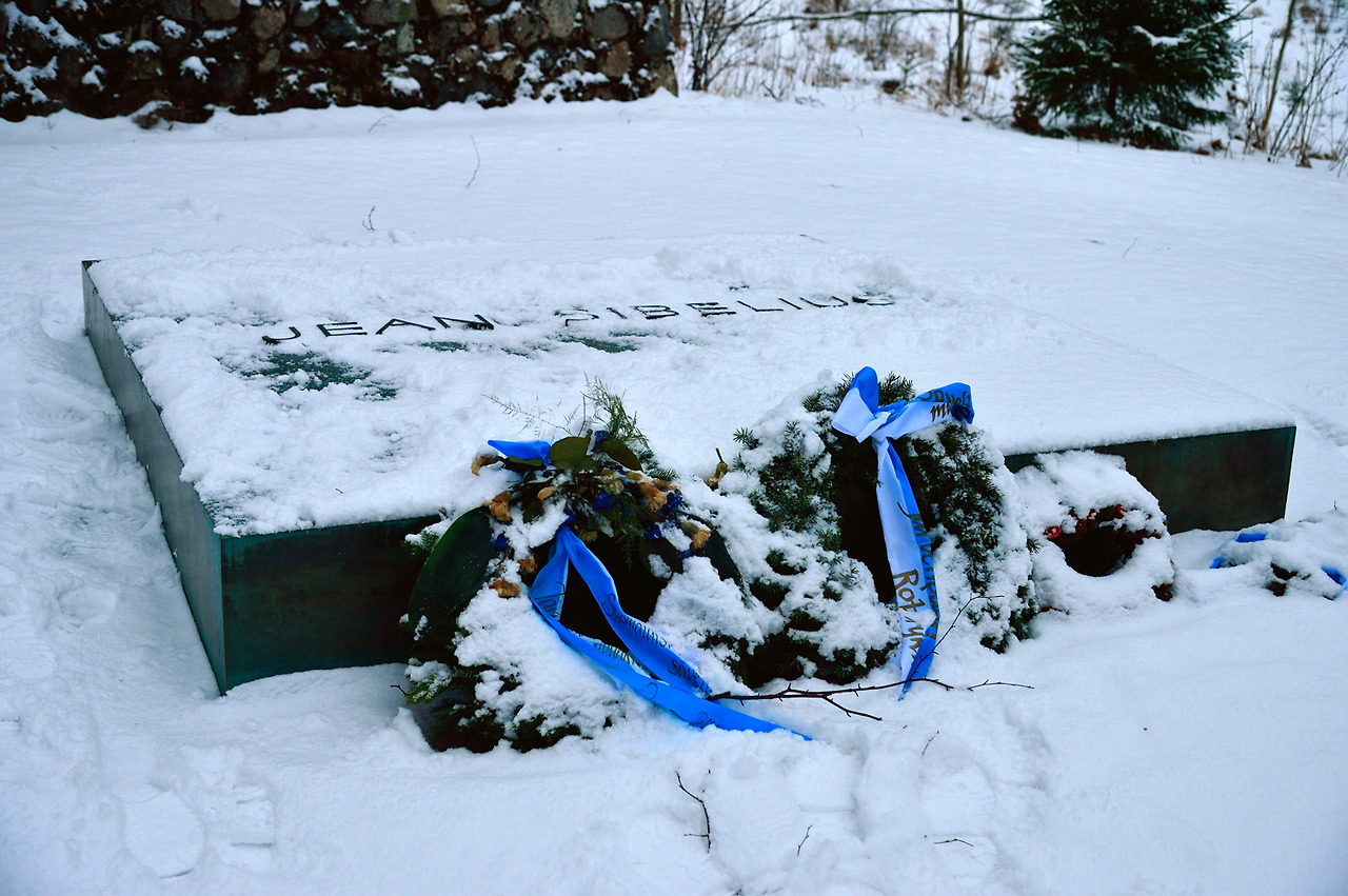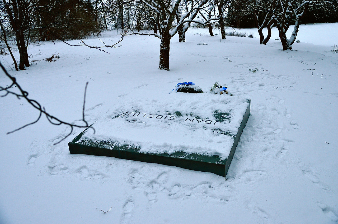 집 곁으로 난 길을 따라 조금만 내려서면 작은 공터가 나오는데 그곳에 시벨리우스 무덤이 있다. 그 무덤에는 시벨리우스와 부인 아이노가 함께 묻혀있다. 정사각형의 돌로 만든 비석은 사위인 건축가 블롬슈테트가 디자인했다. 자연을 사랑하던 시벨리우스는 그렇게 호수가 내려다 보이는 숲 속 언덕 한편에서 쉬고 있었다.