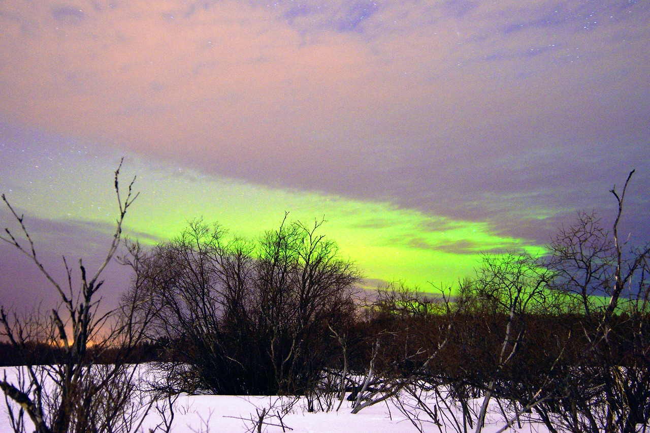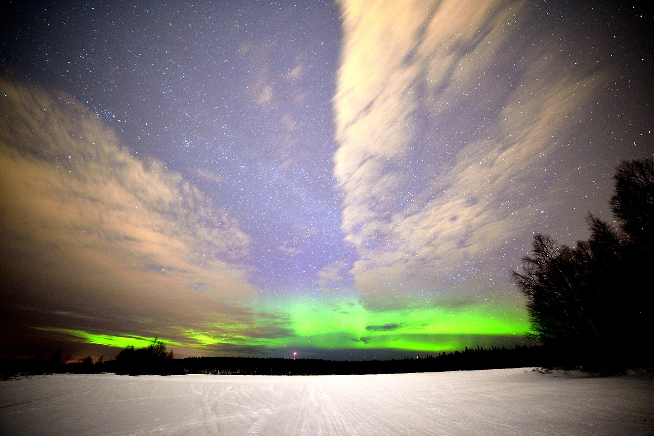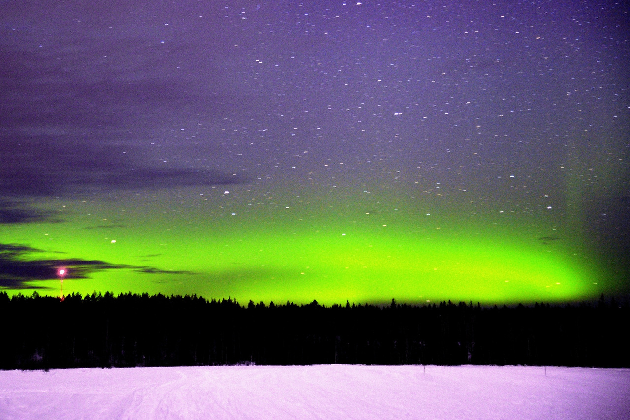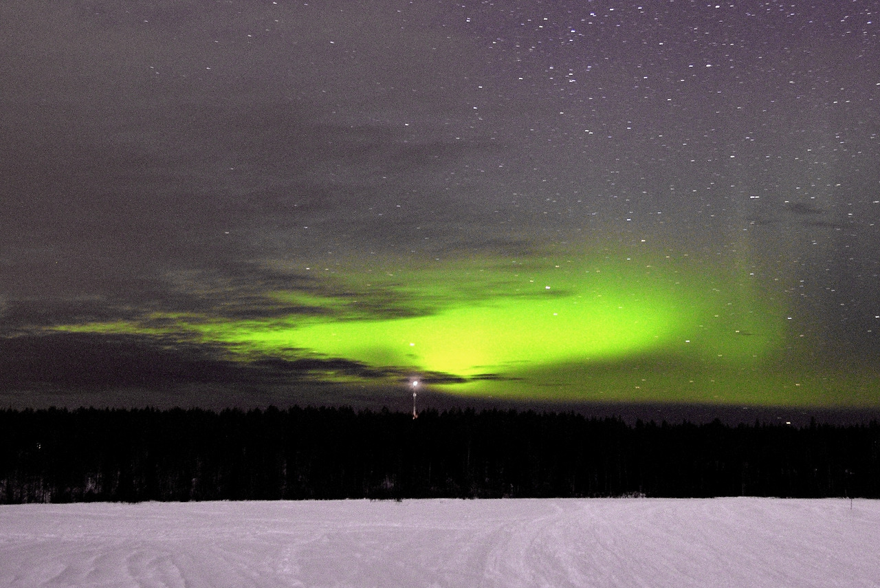 * 로바니에미에서 만난 오로라, 오로라 강도가 그리 높지 않았고 구름도 낀 흐린 날이었다.