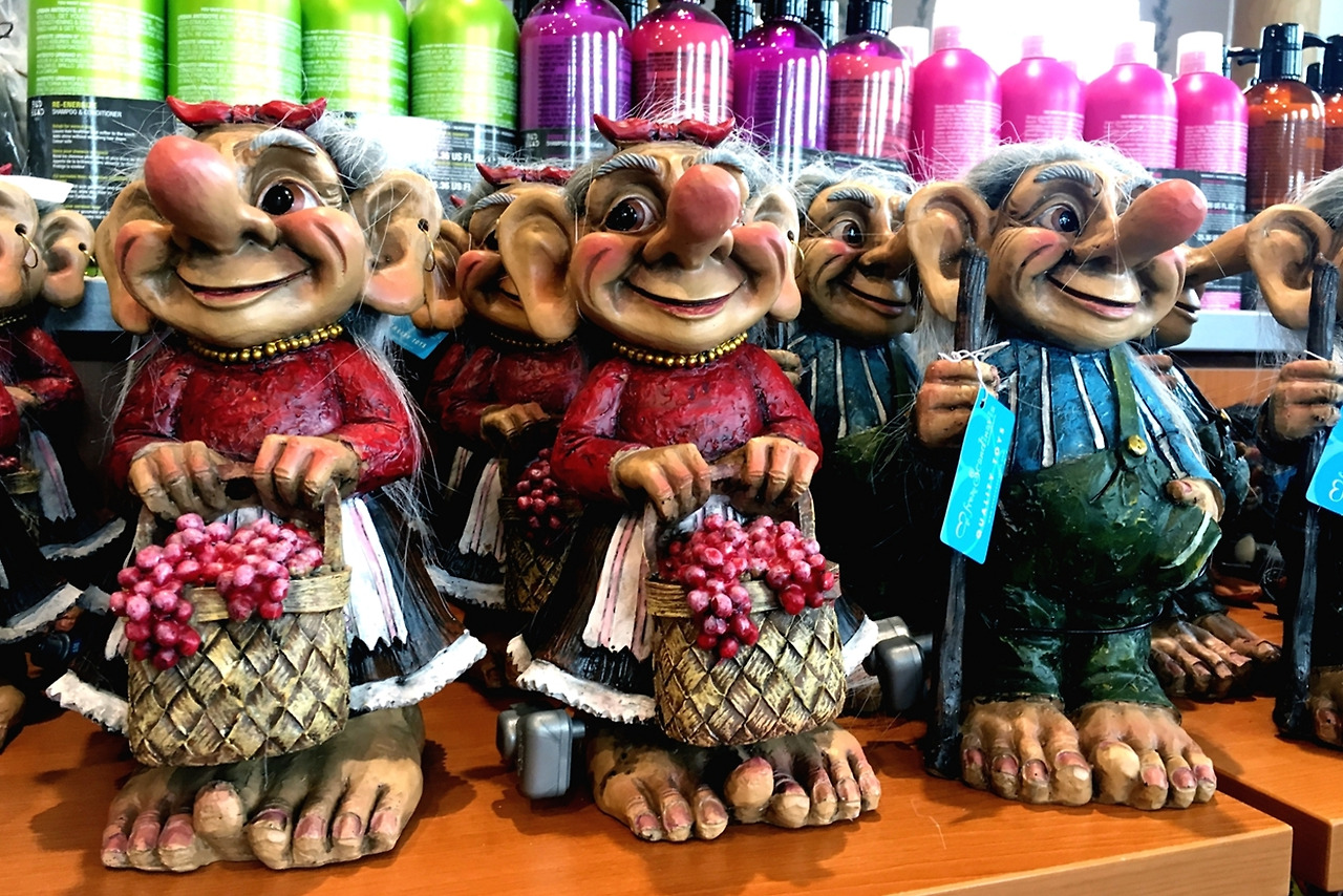 * 매점에서 판매하는 핀란드 캐릭터들, 스칸디나비아 국가들, 특히 스웨덴 톰테와 엘프를 복제한 것들이다.