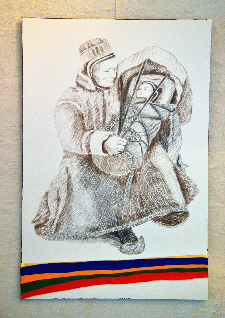 * 사미대학 복도에 걸린 사미인 모습액자와 카우토키노 마을 전경, 그리고 카우토키노 교회