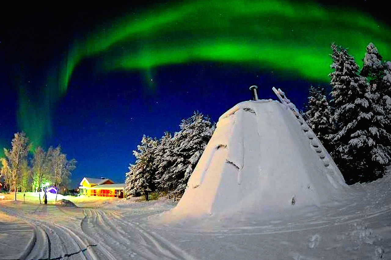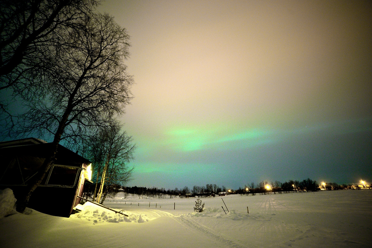 늦은 저녁 도착한 숙소는 간밤에 내린 눈으로 주변이 온통 하얗게 채색되어 있었고 그리 멀지 않은 곳에 사미인들 거주지가 있는지 환한 불빛이 밤을 밝히고 있었다. 그런데 그 불빛보다 더 밝은 별들이 쏟아져 나오기 시작한다. 잠시 후에는 별들 사이로 오로라가 춤추며 나타나는 게 아닌가!