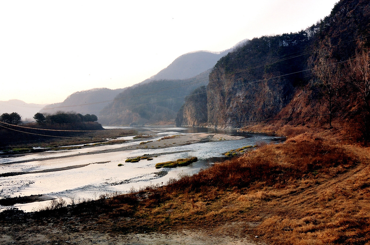 바로 그 화석정에서 바라보면 강 건너 평야지대가 동파리 마을인데 남방한계선이 지나가는 곳이다.