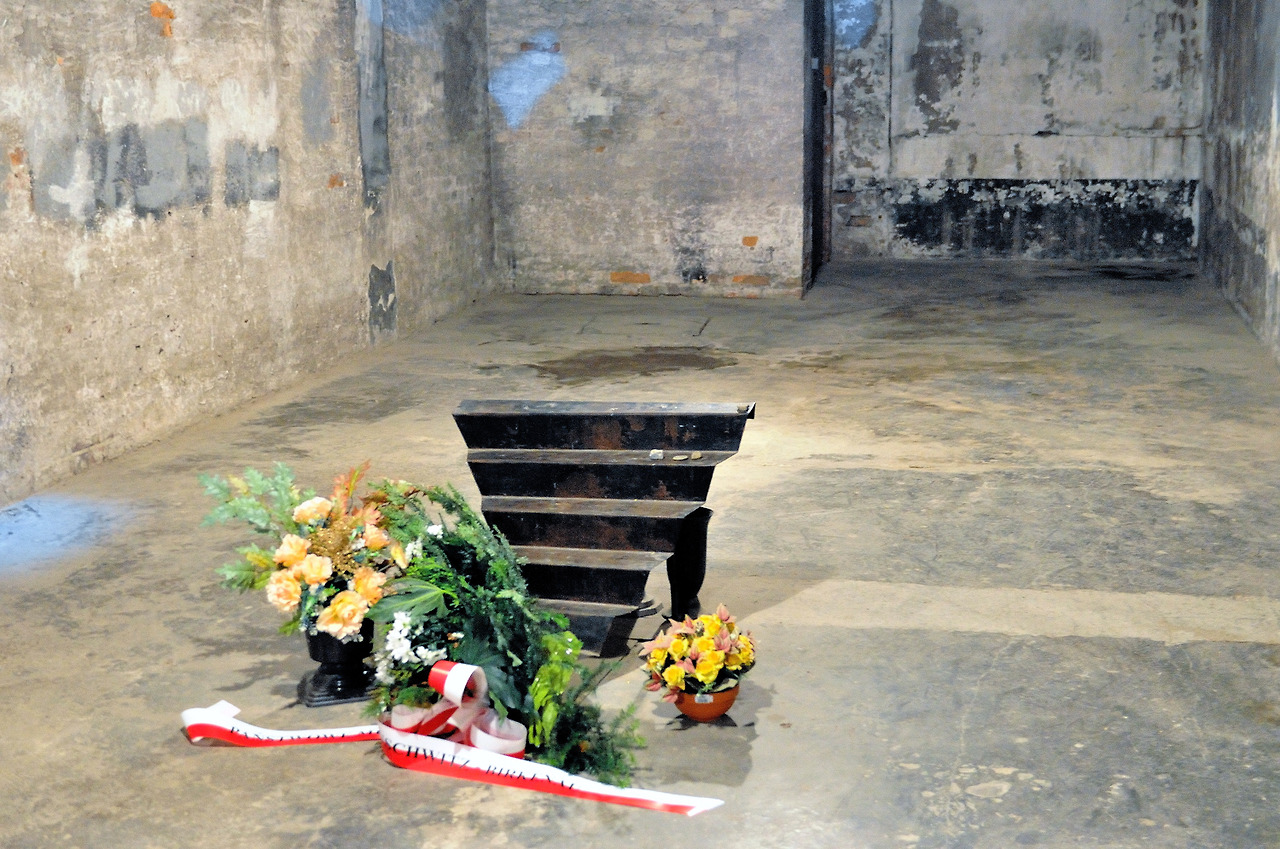 잠시후 전시실을 지나 독가스실로 들어선다. 이곳에 누군가 꽃다발을 갖다 놓았다. 이곳에서 한 번에 2백여 명씩 '샤워'를 시켰다고 한다. 그리 크지도 않은 가스실에서 죽음의 샤워를 마친 시체들은 바로 옆 소각장으로 옮겨 소각을 한다. 유태인은 지구 상에서 사라져야 할 종족이라는 망언과 함께 사라진 그들, 이제 그들은 영정으로 남았다.