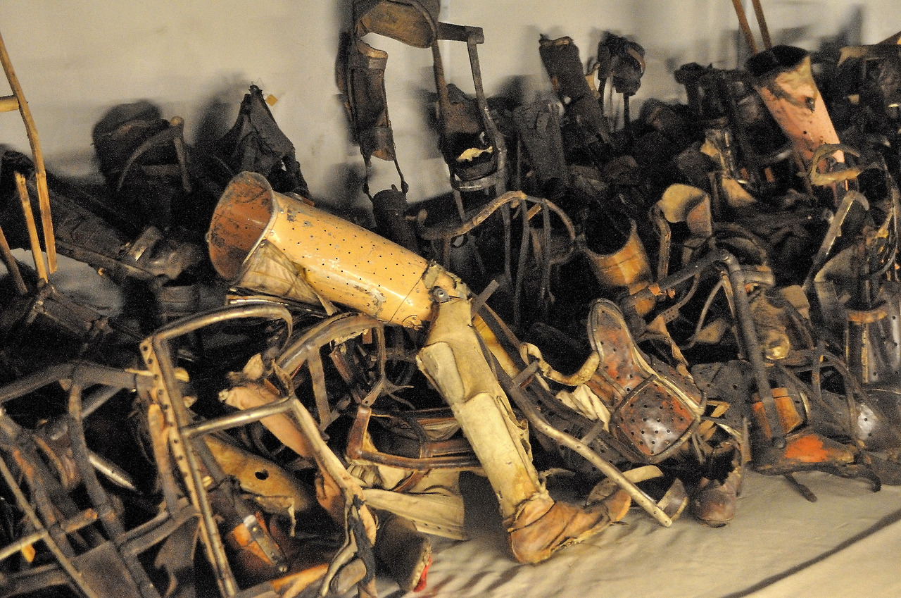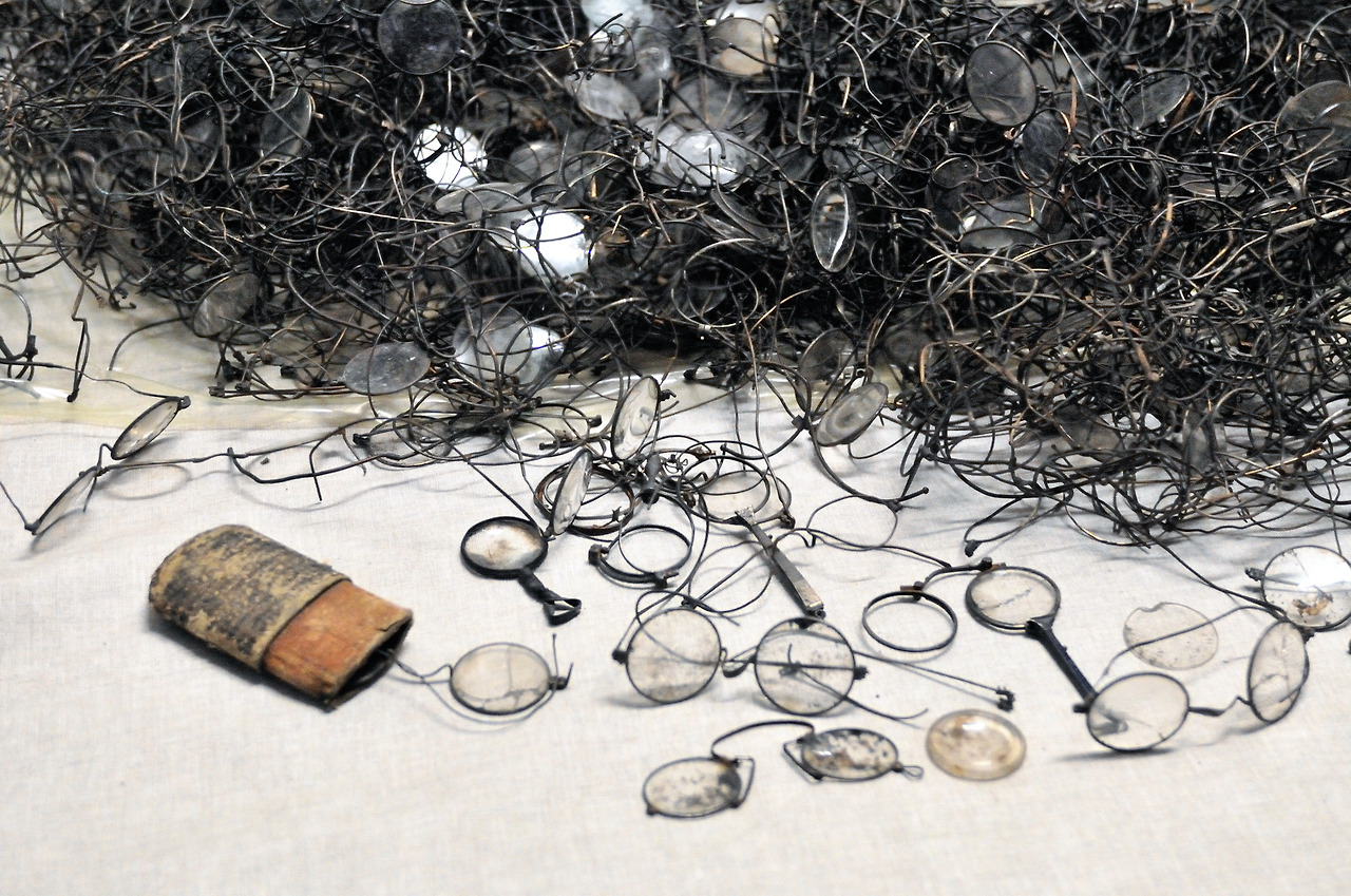 그뿐 아니라 전시실에는, 여자들 머리카락으로 직조한 천조각과 그 원재료인 여자 머리카락들이 보인다. 머리카락은 1Kg에 50 페니히(당시 250원 정도)였다고 하는데 모직 원료로 제공되었다고 한다. 누군가의 의복으로 사람의 천연모가 사용되었다는 말이다. 이외에도 유태인들이 사용하던 의족과 신발들, 그리고 이름이 적힌 가방과 인형, 안경들도 전시되어 있다.