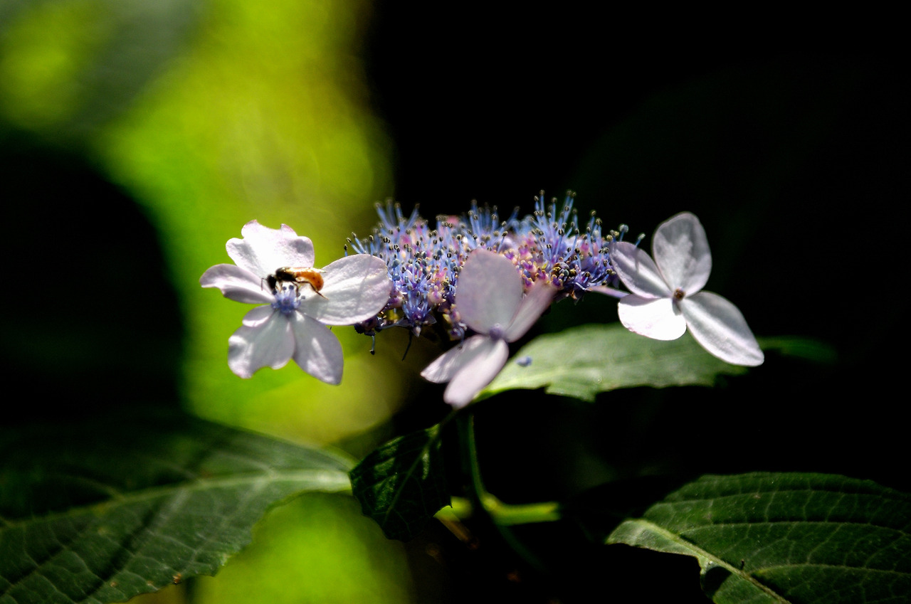 곤충들이 화려한 산수국의 가짜 꽃에 매료되어 모여들면,