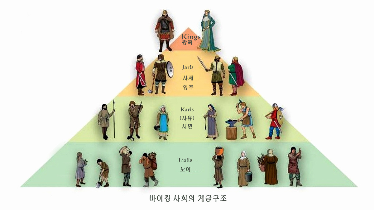 바이킹 시대의 사회구조를 간략히 요약하면 다음과 같은 계급구조를 형성하고 음을 알 수 있다.
