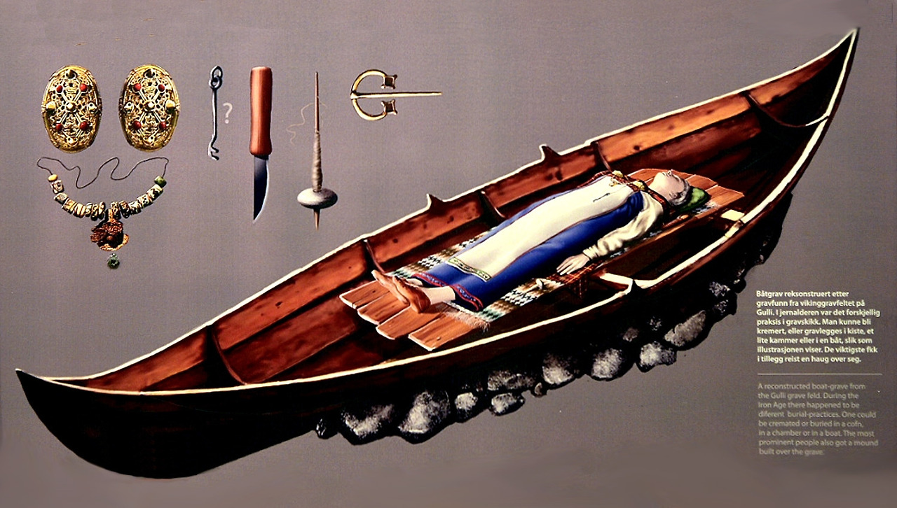 바이킹 시대 초기에 거행된 장례문화는 죽은 자를 선박의 장작더미에 올려놓고 불에 태우는 방식으로 장례를 치르는 경우가 대부분이다. 그런데 점차 바이킹 시대가 진척되면서 보다 많은 사람들이 바이킹 선박에 죽은 자를 싣고 바다로 나가 배와 함께 화장을 하는 장례식을 선호하는 것으로 나타났다. 그리고 불에 탄 주검과 선박은 그대로 바다에 수장시키는 것이 일반적인 것처럼 보였다. 이런 형식의 매장은 우리가 영화에서 흔히 보던 장면과 거의 유사한 형태이기도 하다. 바이킹 시대에 흔히 보이던 전형적인 장례문화라고 해도 될 것이다.