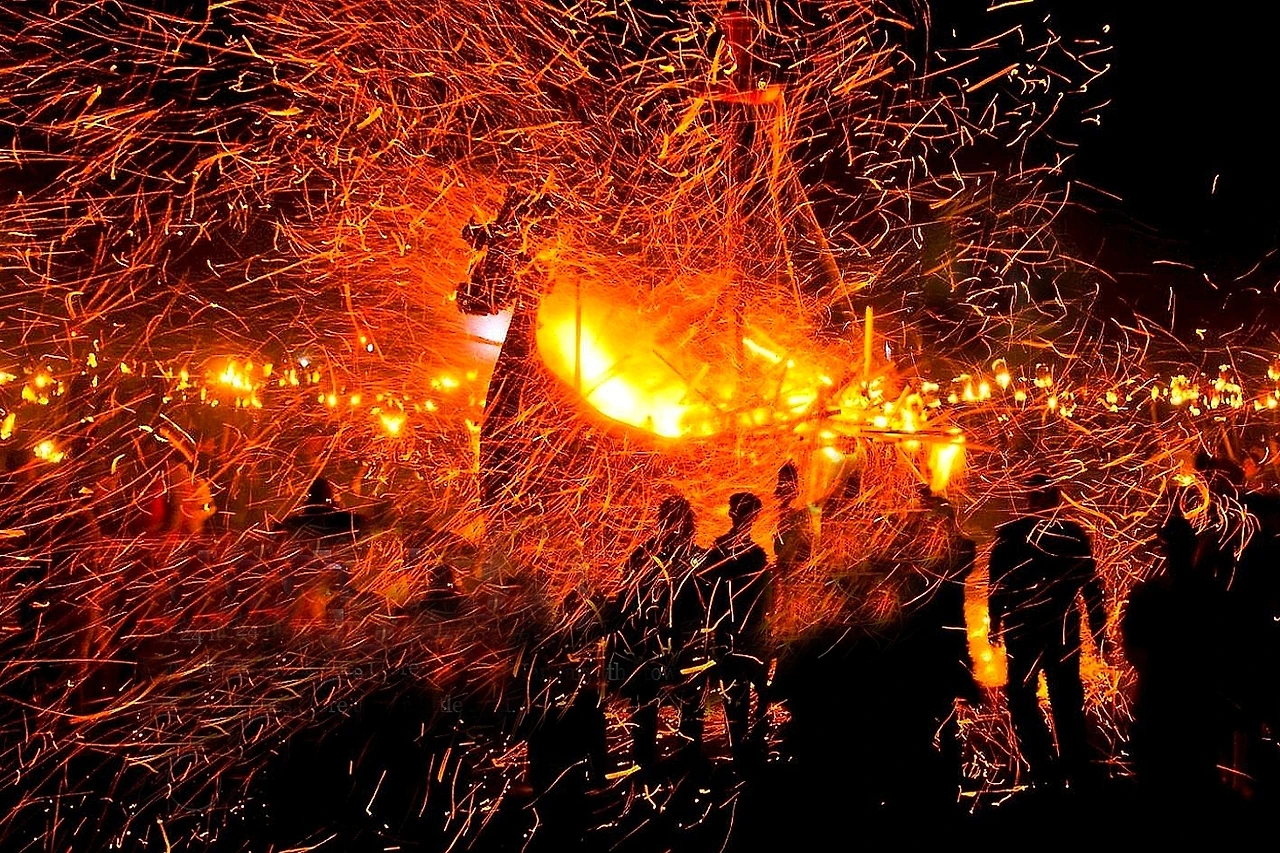 셔틀랜드 제도는 예전 노르웨이 바이킹들이 정착해 지금까지 그 후손들이 살고 있다. 따라서 주민들이 지금까지 예전 바이킹 문화를 그대로 답습하며 살고 있는 특이한 지역이다. 뿐만 아니라 인근에 있는 오크니(Orkney) 제도 역시 노르웨이 출신 바이킹들이 지배했던 지역이었다. 셔틀랜드 제도와 오크니 제도는 1468년 노르웨이가 스코틀랜드에게 소유권을 모두 팔아넘겨 현재는 스코틀랜드 관할이지만 여전히 노르웨이 풍습을 따르는 특이한 지역이다.(* 노르웨이 국경일 등에는 노르웨이 국민들처럼 노르웨이 국기를 내걸고 시가행진을 하며 기념일을 즐긴다. 또한 특정한 행사가 있을 때는 노르웨이 여왕이 직접 이곳 행사에 참석해 축사를 하기도 한다.)