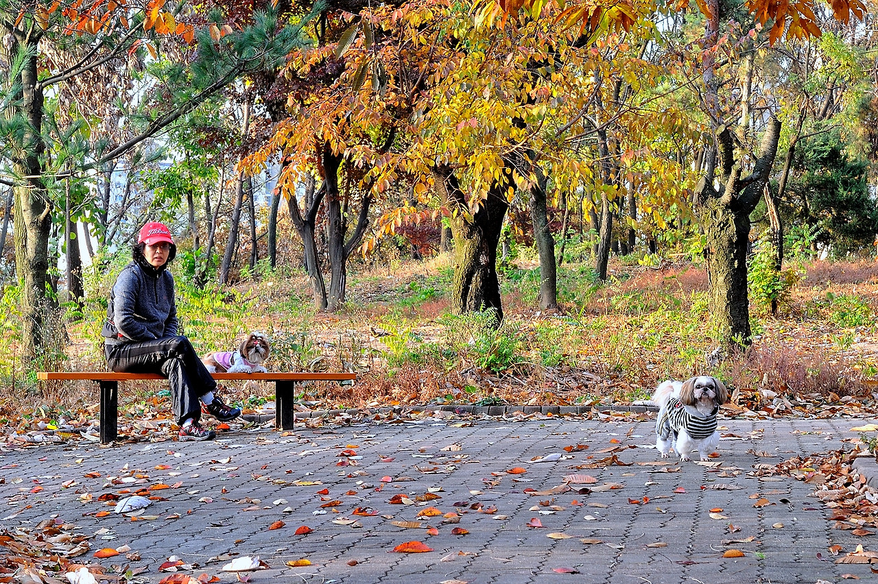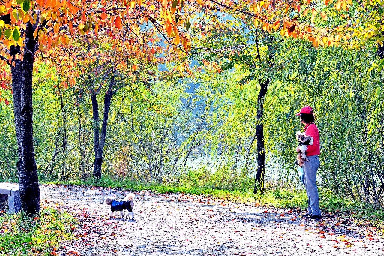 레오와 마리가 누워있는 곳에 단풍이 참 곱게도 물들었다.