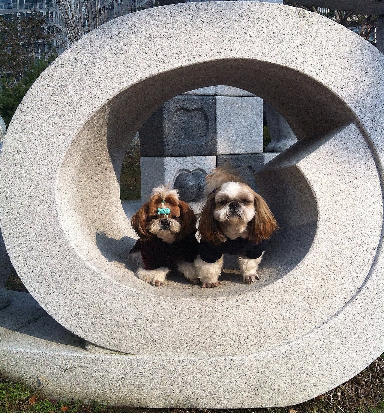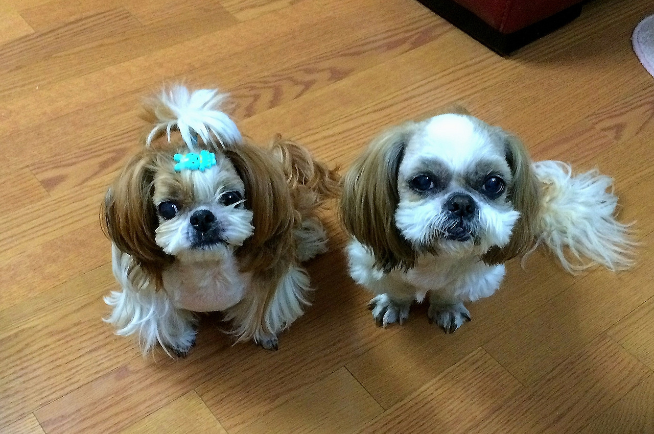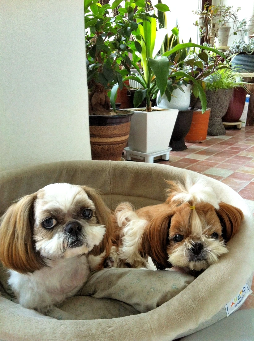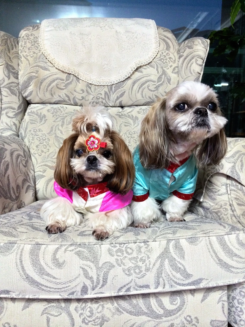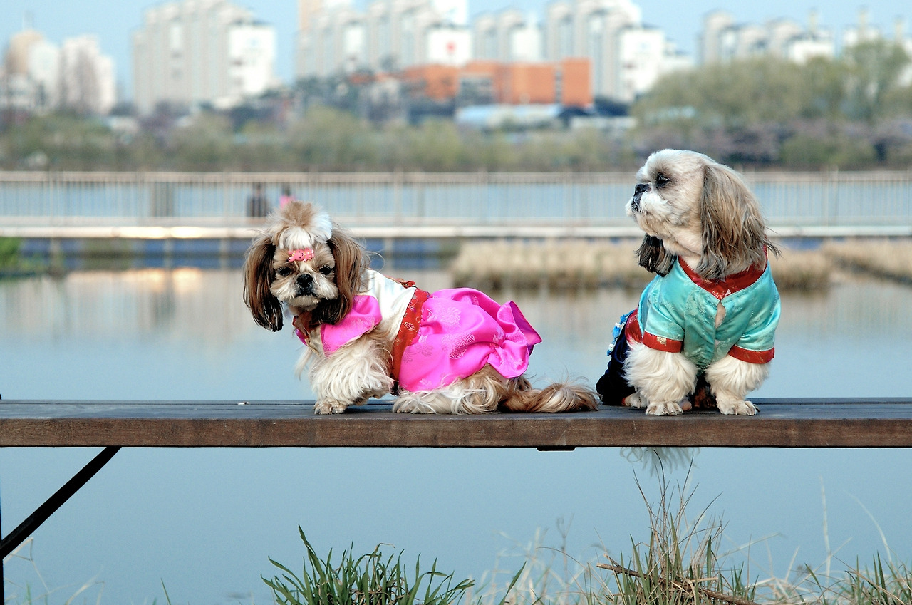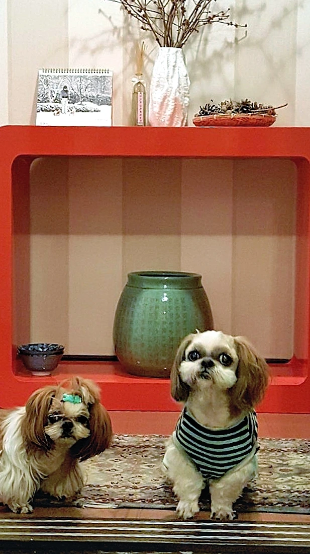 진열장 안에 두 마리가 덩그마니 앉아있다 아내와 내가 가게 안으로 들어오는 것을 보았는지 일어나 낑낑대며 몸놀림을 한다.