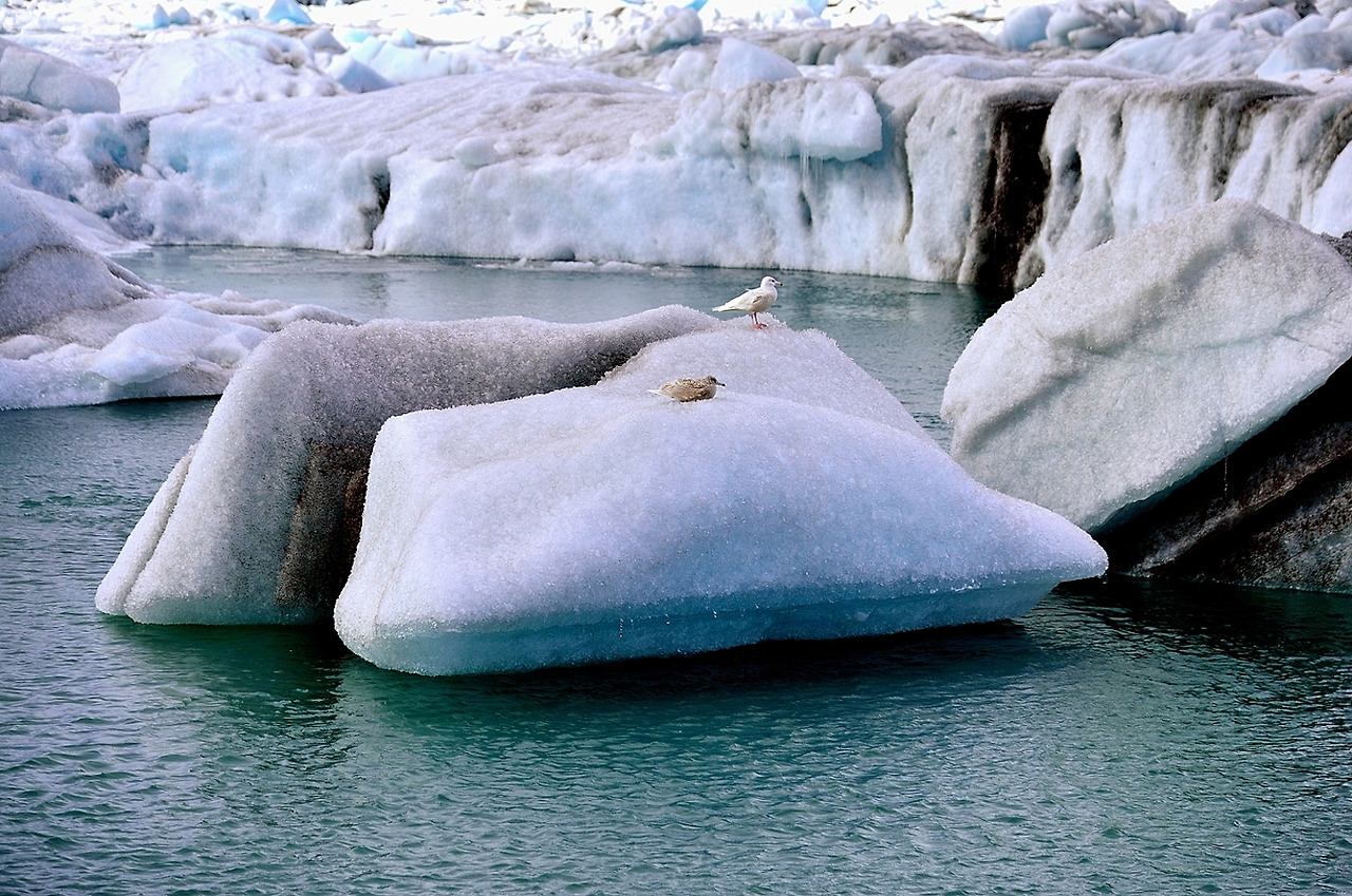 빙하조각들이 하얀 조각만 있는 게 아니다. 검은 조각도 보인다. 검은 건 화산재가 날려 눈 속에 스며들어 검게 된 것이다. 아마 2010년도 화산 폭발 당시 엄청난 화산재가 아이슬란드 동남부를 뒤덮어버려 특히 이 부근 빙하들은 온통 검은색이다. 검은색이 간간히 배어들어 있는 얼음조각들이 마치 작품처럼 보인다.