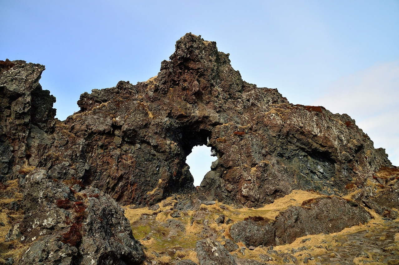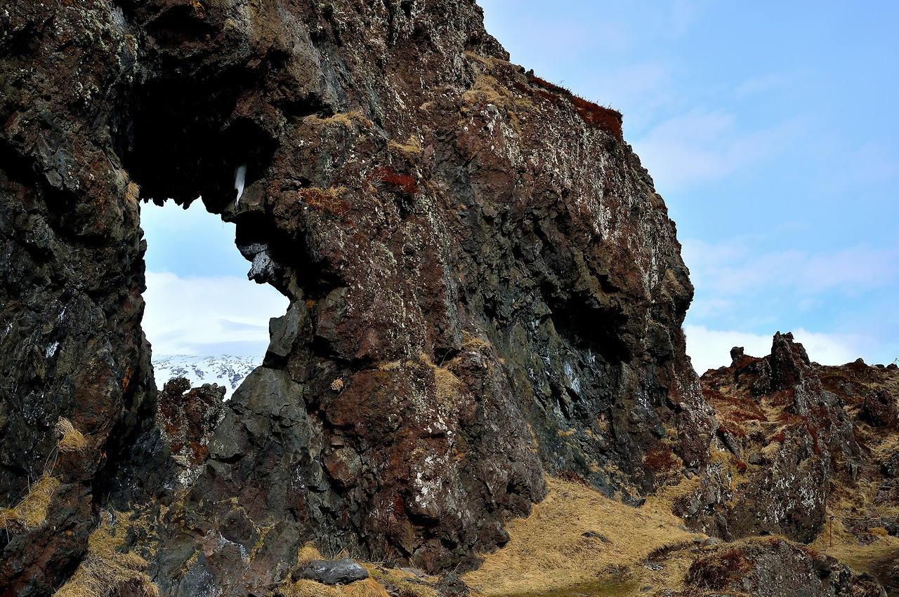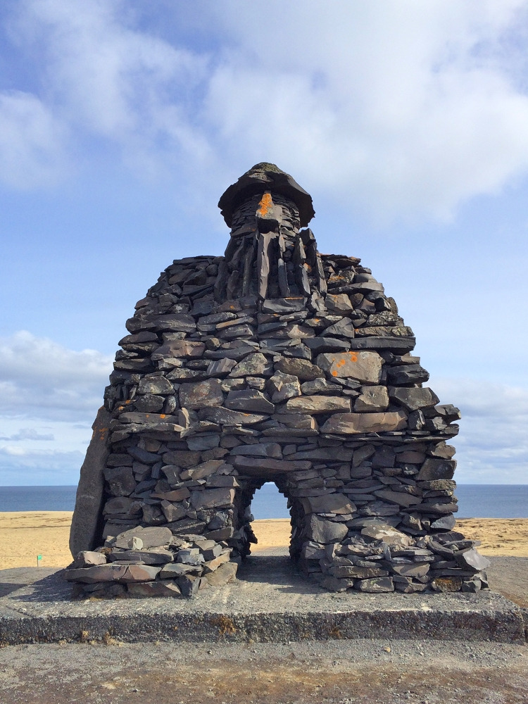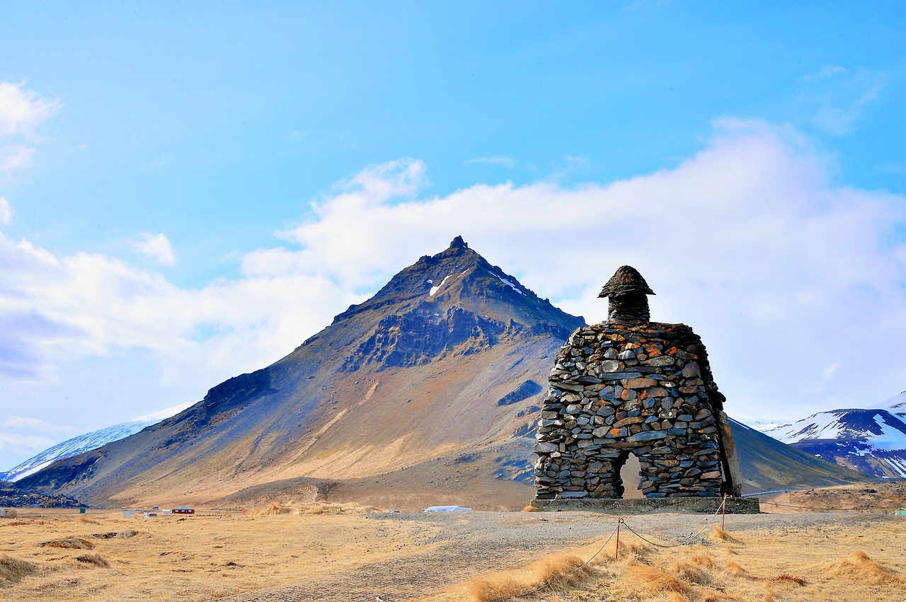 스네펠스요쿨을 한 바퀴 돌아 다시 해안가를 따라 남쪽으로 방향을 잡는다. 아르나르스타피(Arnarstapi) 마을로 간다. 이곳은 바르두르 사가(Bardur Saga)의 배경이 된 곳이다. 거인 석상이 마치 사람처럼 스네펠스요쿨을 바라보고 서있다. 아이슬란드를 지키는 수호신이 바로 ‘거인’이라 했다. 바로 그 거인을 의인화해서 만든 것으로 보였다. 스네펠스요쿨 빙하기 근처에 있어 그런지 제법 신화의 주인공 같은 분위기를 느끼게 한다.