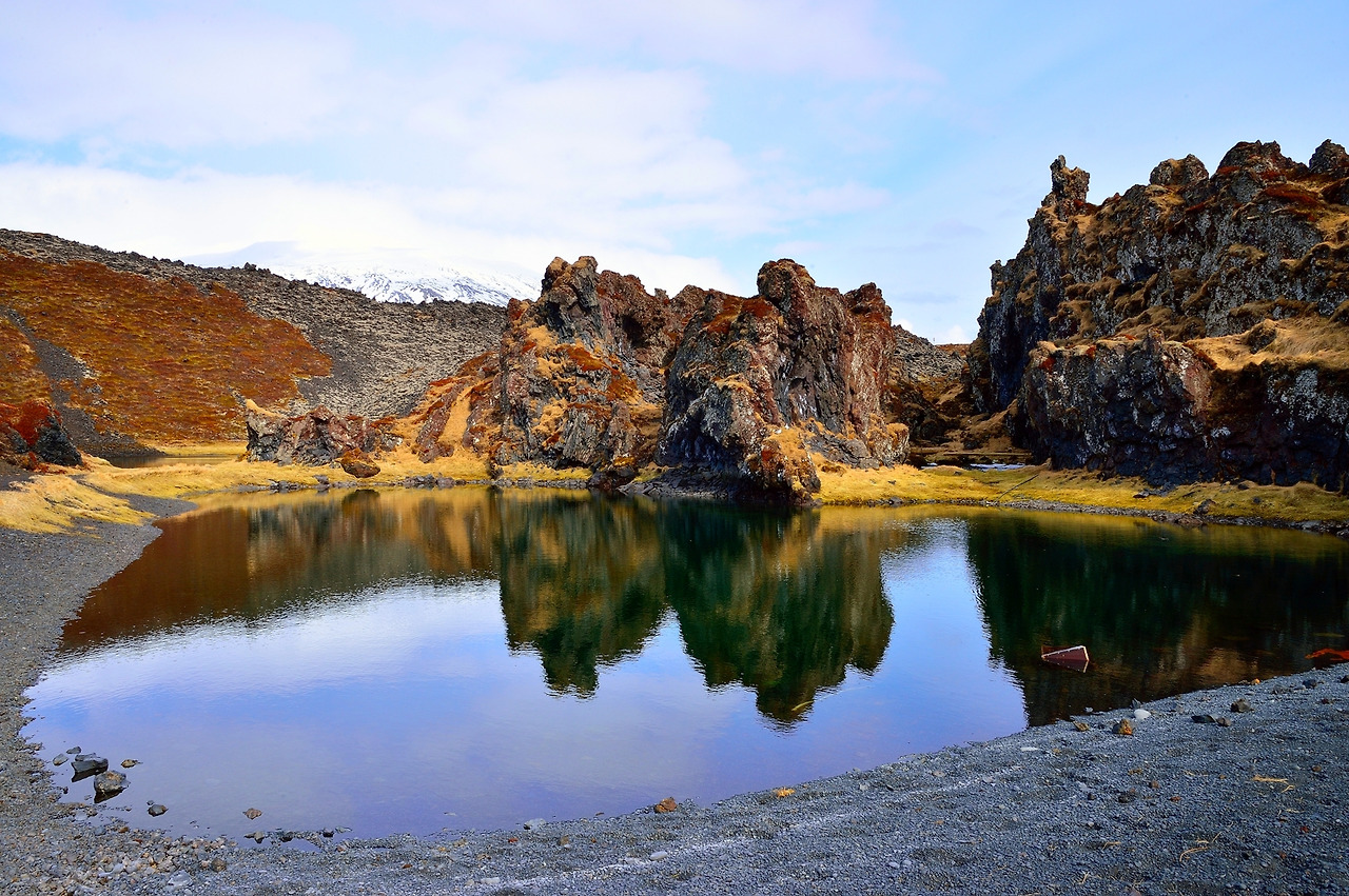 숙소를 출발해 서쪽 해안가 방향으로 간다. 그곳은 아이슬란드의 또 다른 빙하지역인 스네펠스요쿨이라는 곳이다. 그곳은 재미난 사가(Saga, 북유럽 신화)의 무대가 된 곳이기도 하다. 다른 빙하지역에 비해 상대적으로 규모가 작기는 하지만 일 년 내내 하얀 봉우리를 안고 있으니 무슨 이야기가 있을 거라는 상상을 하게 만든다.