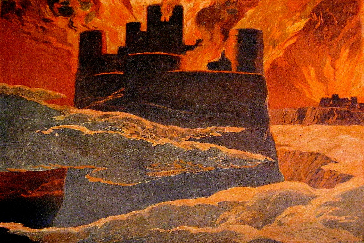 문득 먼 산을 바라보다 화산 폭발을 보는 것 같은 착각을 일으킨다. 하얀 산봉우리가 마치 수르트루가 쏜 불꽃처럼 붉은 연기를 쏟아내는 화산처럼 느껴진다. 저어기 어디께쯤이 바로 비그리드 벌판이 아닐까라는 의구심이 든다. 최후의 결전이 벌어진다는 건 어쩌면 바로 화산 폭발을 의미하는 건 아닐까라는 생각이 머릿속을 떠나지 않는다.