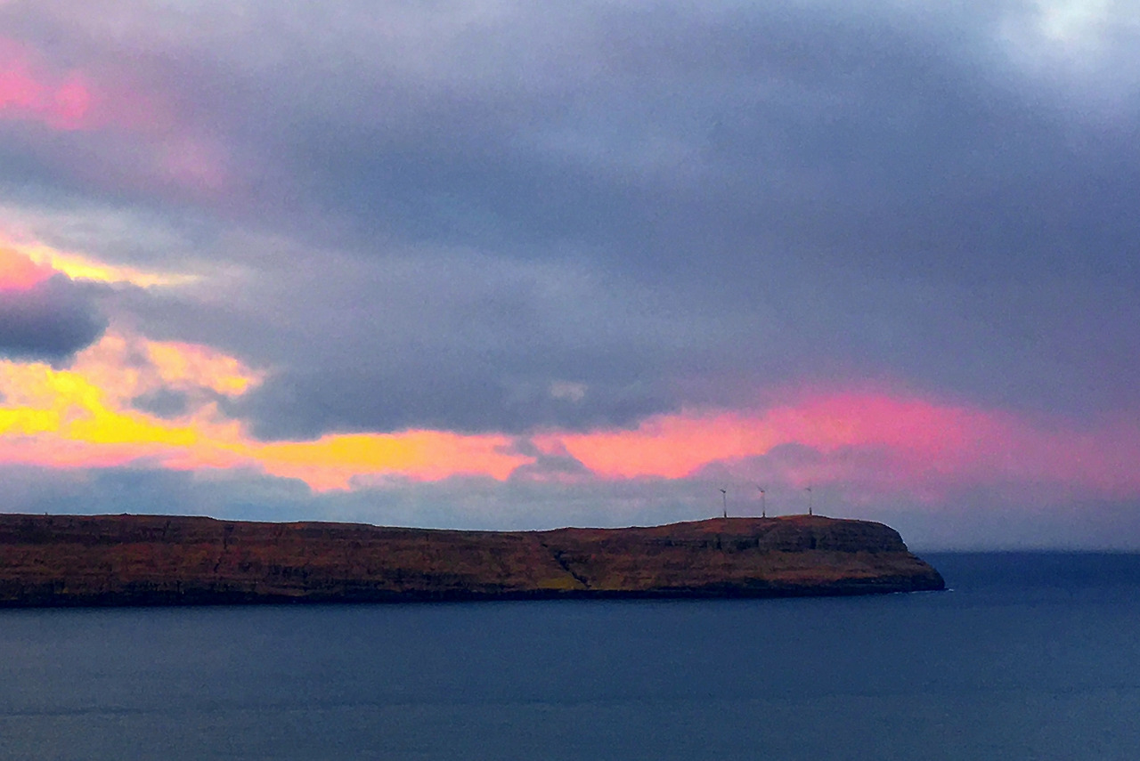 비행기가 하늘로 올라가자마자 구름은 페로제도를 가리기 시작한다.