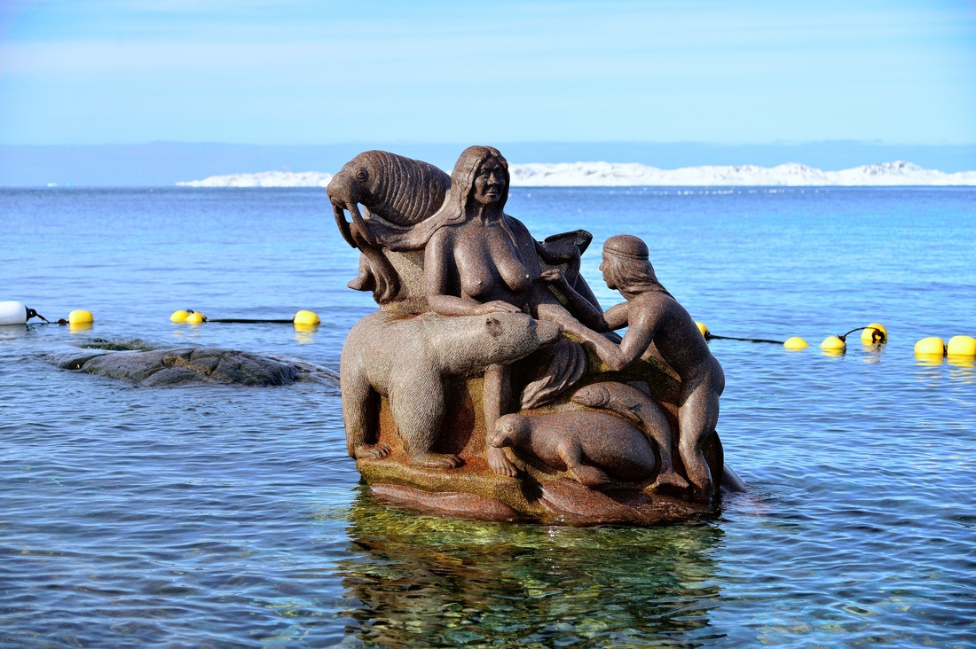 박물관 근처에는 공동묘지가 딸린 교회와 작은 언덕이 보였다. 언덕 위에는 초기 그린란드 총독이자 선교사였던 한스 에게드(Hans Egede) 동상이 보였다. 동상이 있는 언덕으로 올라가 보니 예쁘게 생긴 꼬마 아가씨가 동상 곁애 앉아서 웃으며 나를 반긴다. 말이 통하지 않았지만 웃으며 인사를 나누고 사진도 찍으며 잠시 꼬마 아가씨와 시간을 보낸다. 그런데 문득 언덕 아래 바닷가에 동상 같은 게 눈에 들어왔다. 꼬마 아가씨에게 혹시 세드나 동상이냐고 물으니 세드나라는 말을 알아들은 건지 고개를 끄덕인다. 그린란드를 상징하는 세드나는 그렇게 기대하지 않은 순간 만났다.