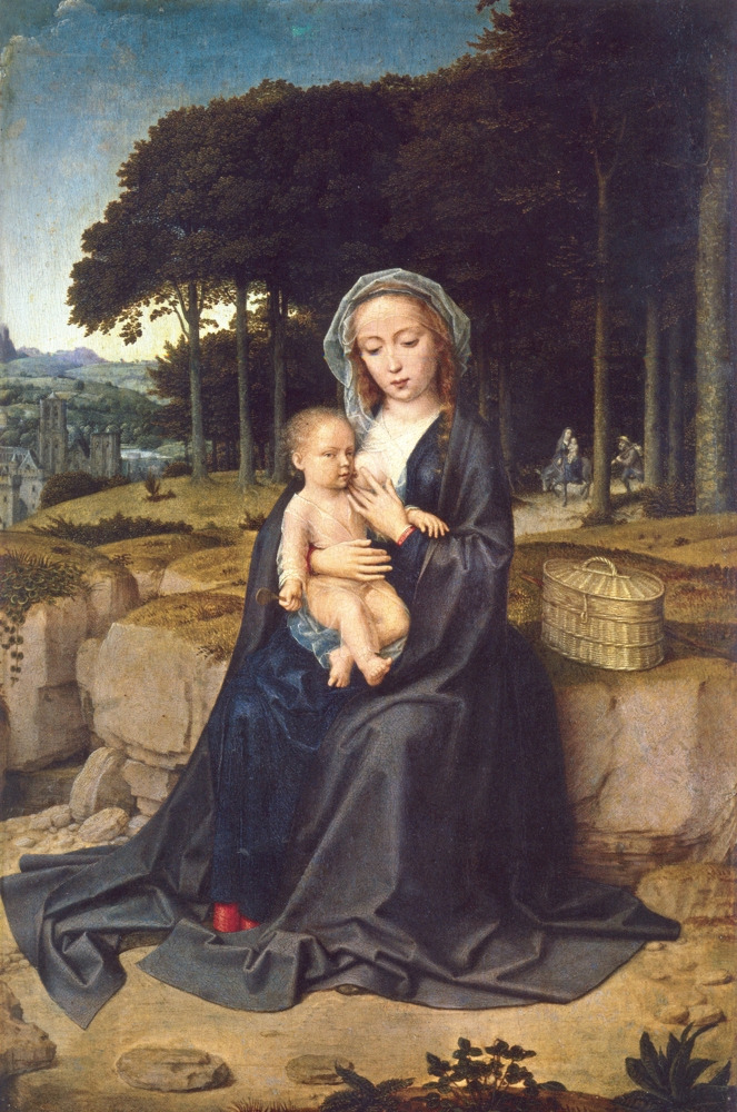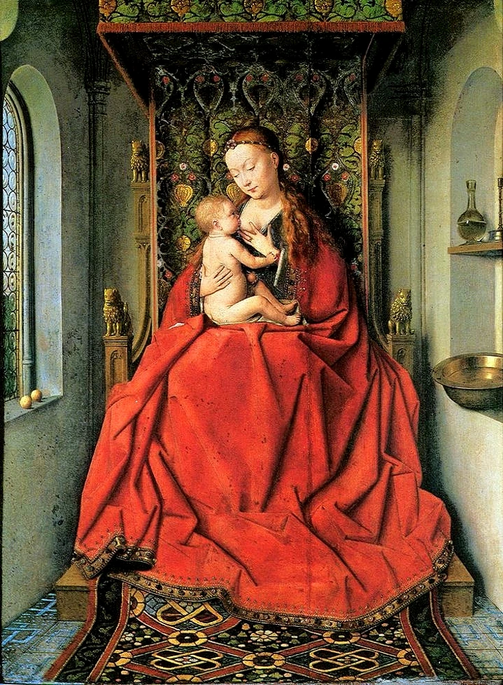 <사진 설명> 왼쪽 사진: 얀 반 에이크, Lucca Madonna, 1432-1441, 오른쪽 사진: 다비드, 수유하는 마돈나