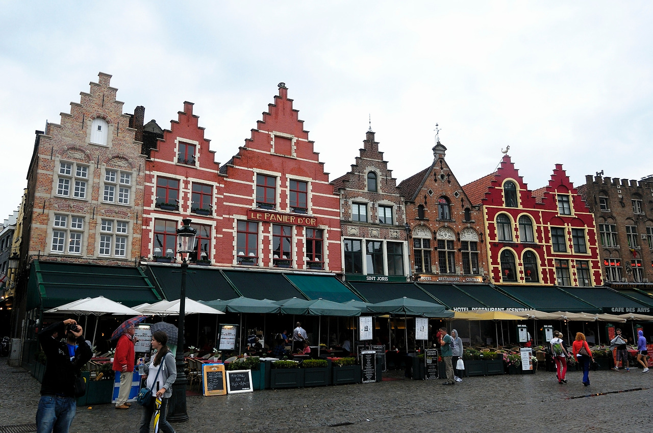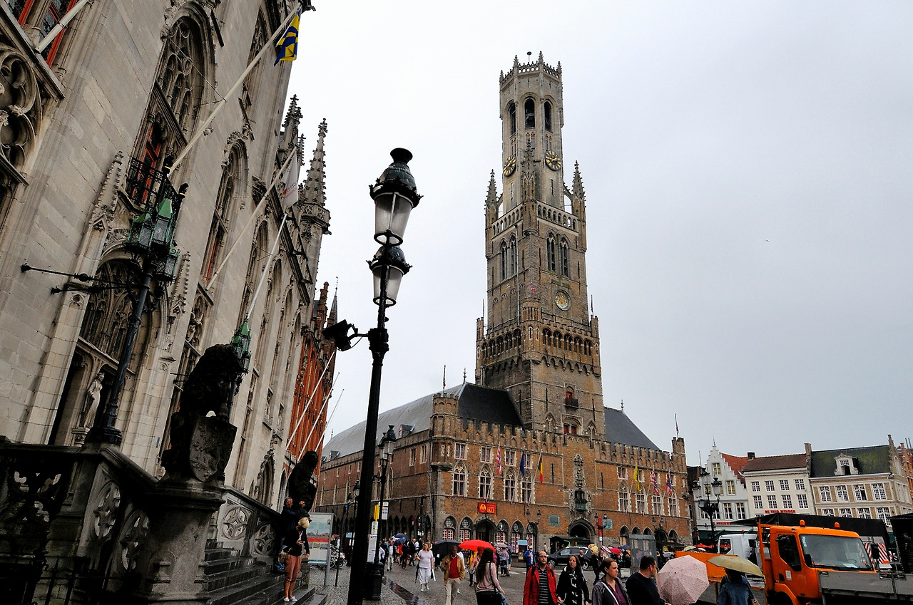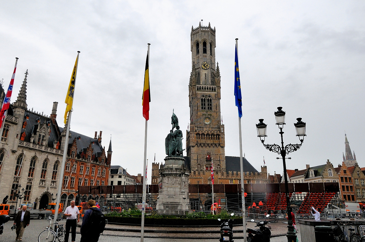 <사진 설명> 벨포르트(Belfort) : 마르크트 광장에 있는 1,240년에 건립된 전망대이다. 366계단을 올라 가면 47개의 종이 있는 꼭대기 전망대에 다다른다. 브뤼헤 시내 전경을 볼수 있다. 브뤼헤 올드타운 마르크트 광장 주변. 벨포르트 앞 광장에 있는 동상은 얀 브레델(Jan Breydel)과 피테르 드 코니크(Pieter de Coninck)인데, 두 사람은 모두 브뤼헤 출신으로 프랑스 압제에 저항한 브뤼헤의 영웅들이다. 특히, 얀 브레델은 군인이 아닌 고기 수입업자였다고 한다.
