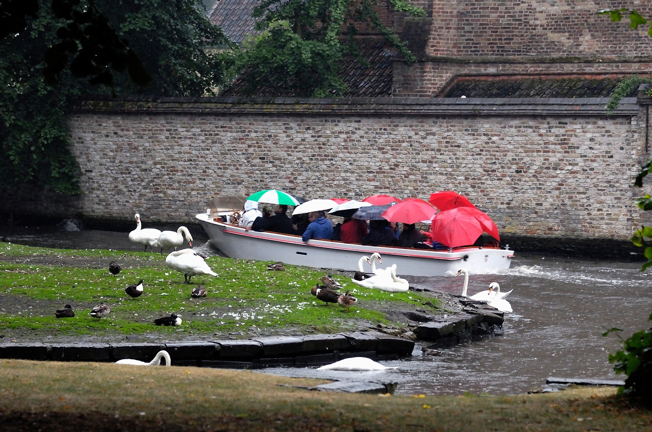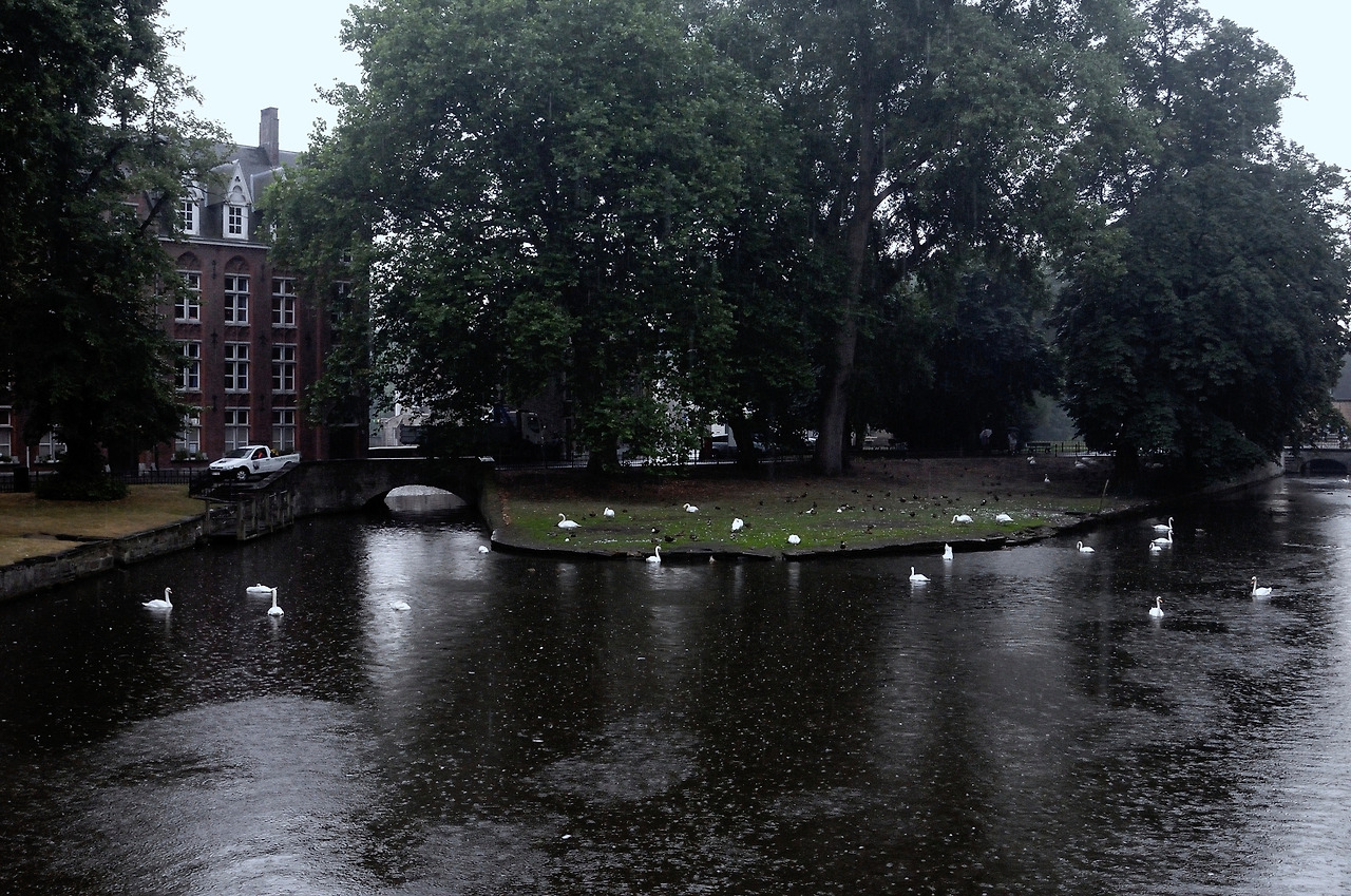 <사진 설명> 브뤼헤 외곽에 있는 베긴 수녀회(왼쪽 사진)를 관통하고 있는 운하에 ‘사랑의 호수’(Minnewater)라는 이름을 가지고 있는 백조들의 서식지(오른쪽 사진)가 있다. 이곳에서 요리스는 호데 리베에게 사랑 고백을 한다.