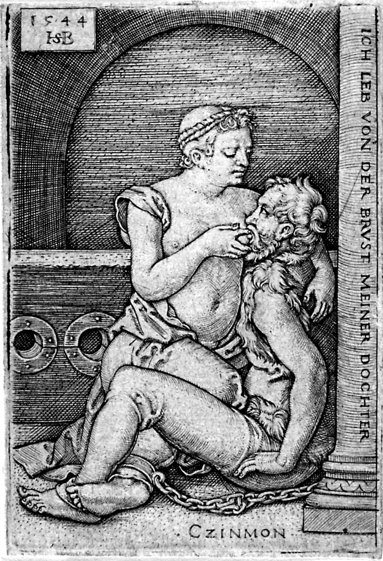 로마시대의 작가 발레리우스 막시무스(Valerius Maximus)는 AD 30년에 <고대 로마인의 기억할만한 행동과 격언들(Factorum ac dictorum memorabillium)이라는 책을 펴낸다. ‘카리타스 로마나’(Caritas Romana: 로마의 자비)는 바로 이 책 제 4권 5장에 실린 이야기이다.