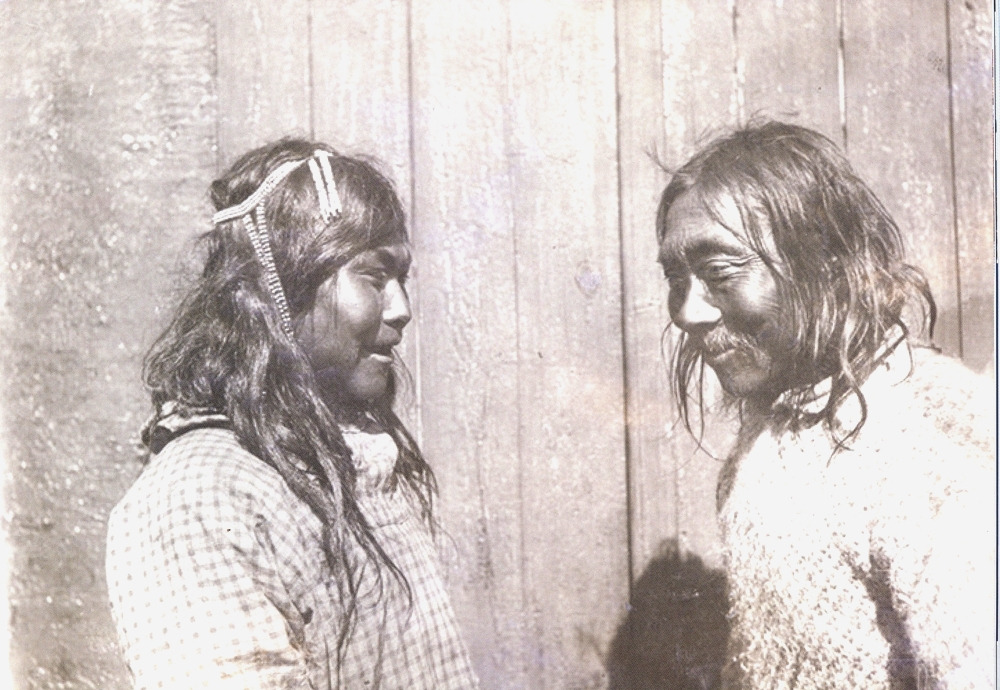 사진 속에 담긴 것은 이누이트들이었다. 두 사람의 이누이트가 다정하게 마주 보고 있는 사진인데, 왼쪽이 누숙칼리바크(Nusukkalivaq), 오른쪽이 풍그요르테크(Pungjorteq)라는 이름의 사내였다. 그들은 모두 긴 머리를 기르고 있었는데 그중 누숙칼리바크는 머리를 묶기 위해 진주로 만든 머리띠를 두르고 있었다. 긴 머리는 아직 기독교로 개종을 하지 않았음을 의미한다.