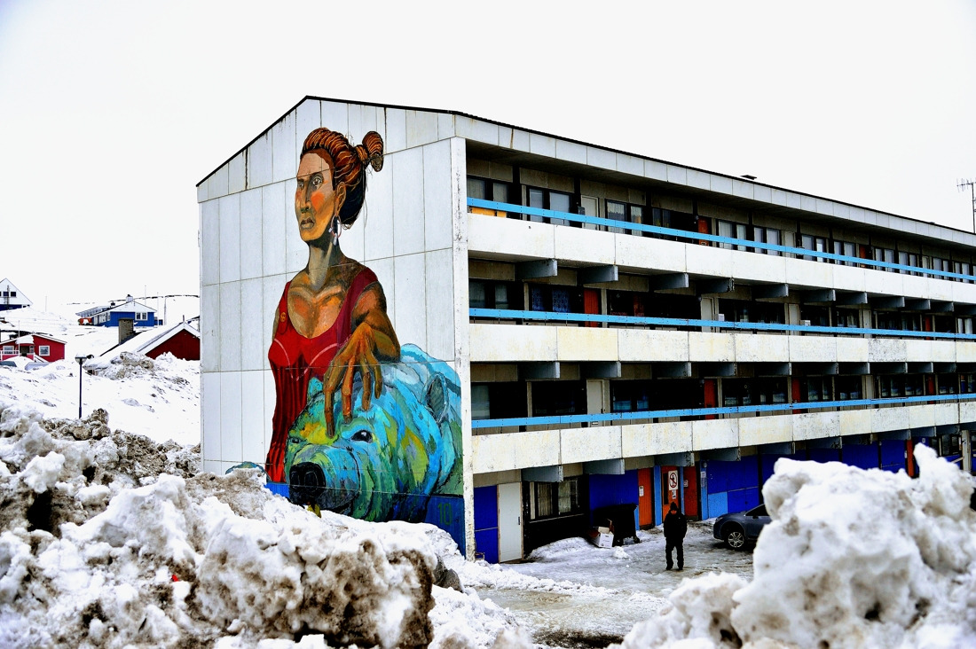 그리고 우리네 아파트에서도 흔히 볼수 있듯이 비어있는 건물 벽면들을 그림들로 채운다. 이 모든 일은 덴마크 정부가 식민지 환경개선을 위한 사업으로 실시한 것이다. 누크 시를 아름답게 가꾸려는 시도에서 아파트에 원색을 칠하고 그림을 그리기 위해 총감독으로 호주의 예술가 귀도 반 헬텐(Guido van Helten)을 누크로 불러들여 작업을 맡긴다.