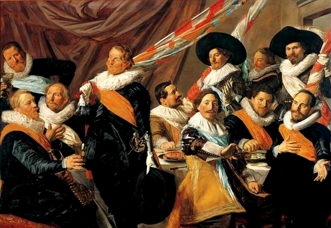 하를렘에서 집단초상화를 그리며 네덜란드군의 사기를 진작시키며 작품 활동을 하는 프란스 할스(Frans Hals, 1582년경~1666년)는 처음부터 시민 군단의 장교들을 위해 어떻게 그들을 위로하고 즐겁게 할 수 있는지를 알고 있었다.