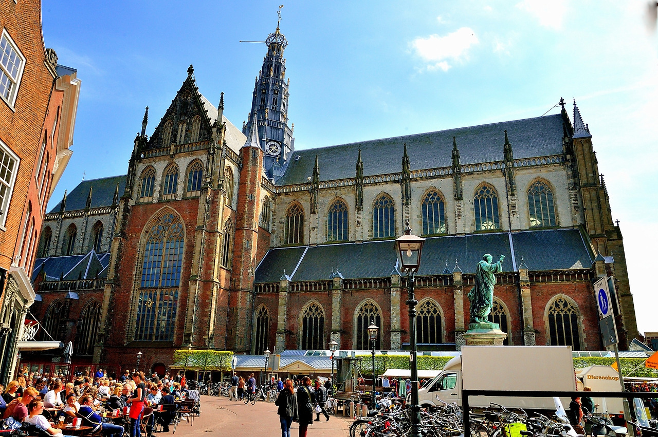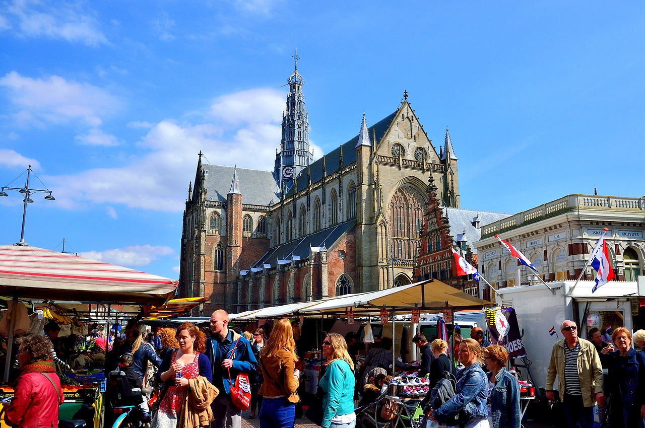 왼쪽: 하를렘 시내에 위치한 성 바보 교회, 오른쪽: 흐로테(Grote)광장은 주말마다 장이 선다.