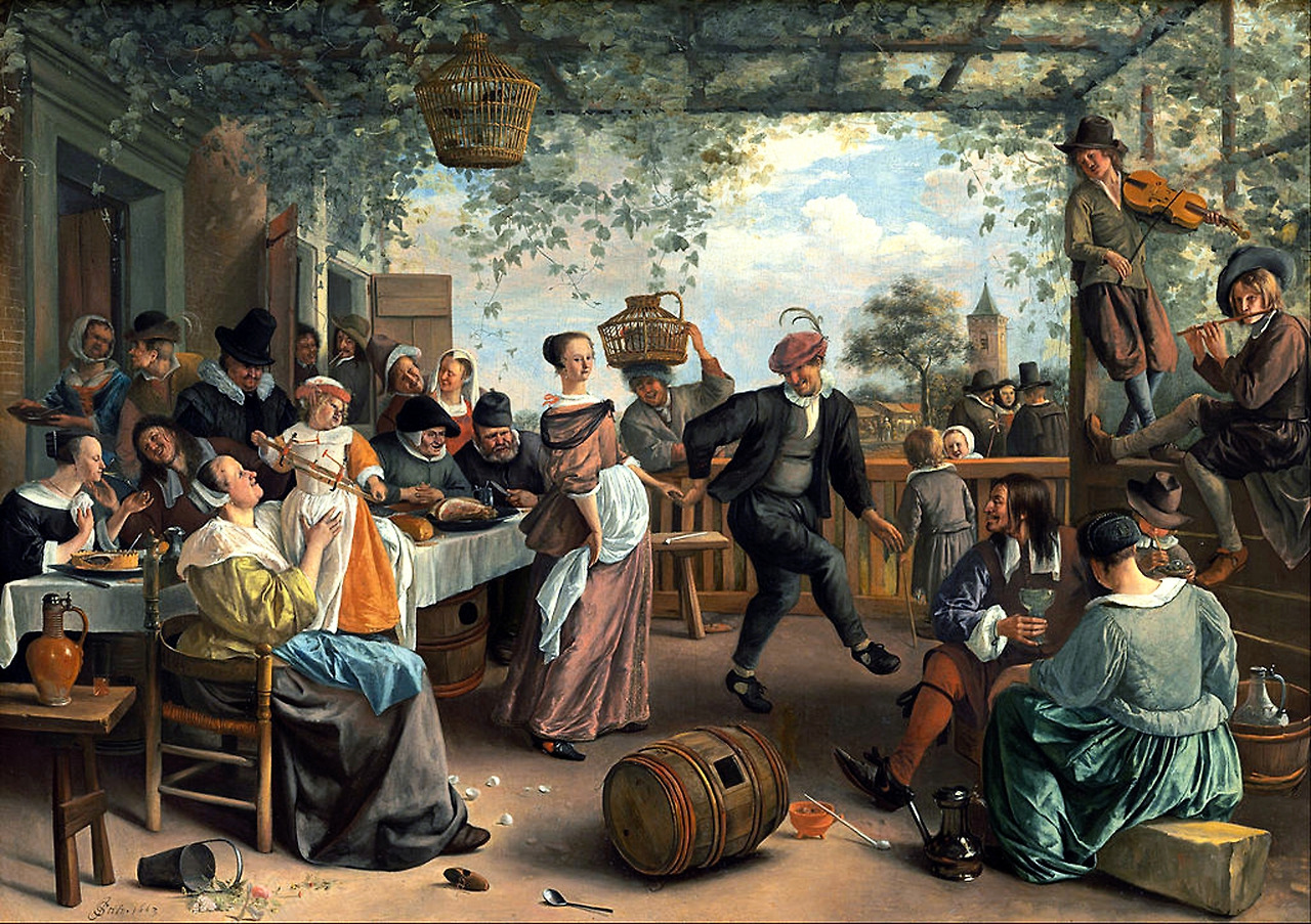 얀 스텐(1626-1679)의 작품들은 인간의 내면적인 면을 부각하고 있다. 풍부한 색감을 사용해 유머러스한 점을 부각하려 노력한 화가이다. 그는 레이덴의 전통적인 가톨릭 신자 가정에서 태어나 1648년에 동료와 함께 레이덴에 화가 조합인 센인트 루크 길드를 만들고 창립멤버로 활동을 한다. 그는 반 호이엔(van Goyen)의 조수