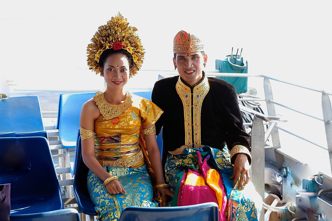 * 배안에서 만난 인도네시아의 어느 신혼부부, 의상이 꽤나 화려하다.