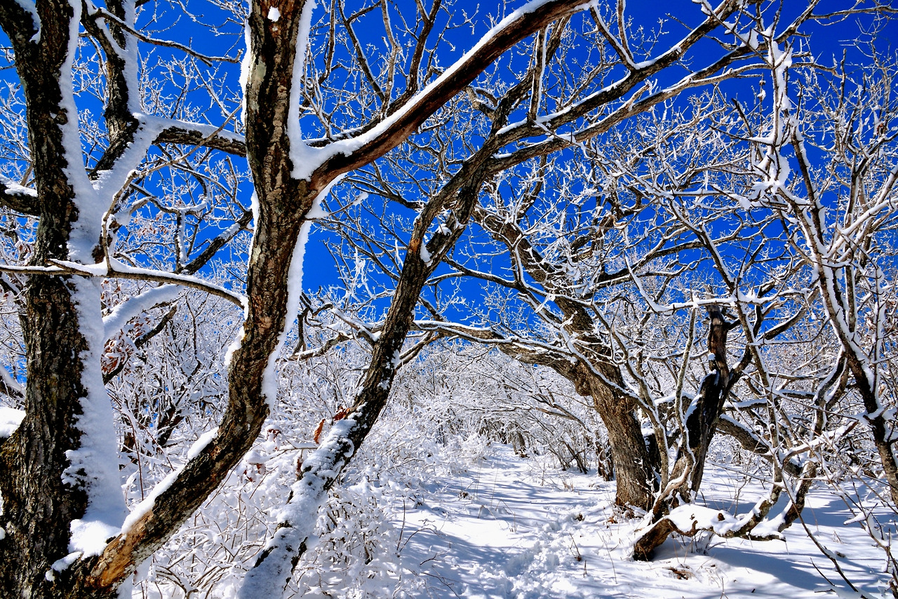 온몸으로 눈보라 속에서 강추위를 견디고 있습니다