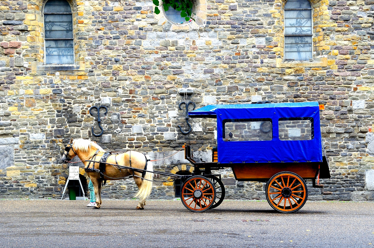 대학 쪽으로 가는 길목에 마차도 보인다. 저 마차를 타고 시내를 한 바퀴 돌아보면 좋을 텐데 마부가 보이 지를 않는다. 하는 수 없이 그냥 걷는다. 길가에 성모 마리아 상이 보인다. 오래된 석고상처럼 느껴진다.