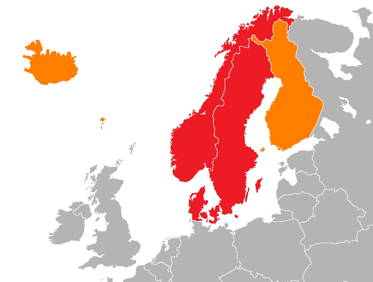 스칸디나비아는 원래 덴마크와 스웨덴, 그리고 노르웨이(붉은색 국가)를 지칭하지만 이외에 아이슬란드와 페로제도, 그리고 핀란드(주황색 국가)를 함께 포함하기도 한다. 그러나 북유럽 국가들의 모든 지역을 일일이 다 돌아볼 수는 없을 것이다. 따라서 앞으로 소개할 북유럽에 대한 이야기들은 필자가 직접 여행한 지역과 보고들은 내용들을 중심으로 북유럽 이야기를 소개하게 될 것이다. 이점을 미리 고백하고 이야기를 시작하려 한다.