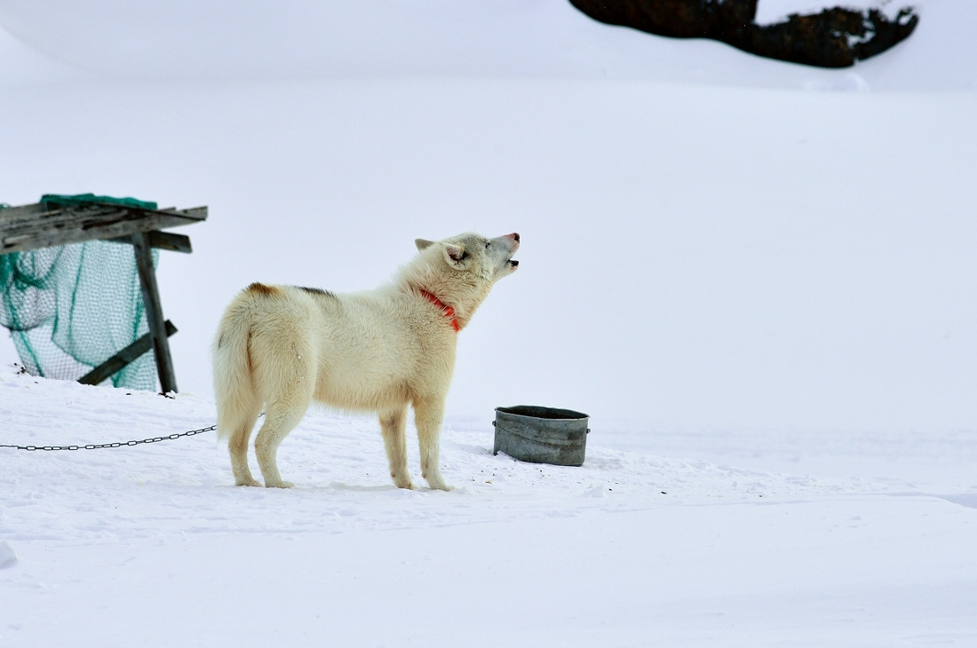 어디선지 늑대울음소리가 들린다. 그런데 가만 듣다 보니 늑대가 아니라 썰매개 울음소리였다. 누크에서는 보지 못했던 썰매개들이었는데 북극권 65도 이상에서만 기를수 있도록 법으로 규정하고 있다고 한다. 아마 종자 보존을 위해 기후조건과 지형적 조건을 고려한 것일지 모르겠다. 가까이에서 본 썰매개는 늑대와 다르지 않았다. 한국에서 보았던 크고 잘생긴 말라뮤트나 시베리안허스키같은 종자는 이곳에 없다. 그런 녀석은 캐나다나 알래스카 같은 곳에 있는가 보다. 아무튼 늑대울음 같은 굉음을 쏟아내고 있는 세드나의 남편일지도 모를 썰매개들의 소리를 들으며 북극의 도시 일루리사트를 걷는다.