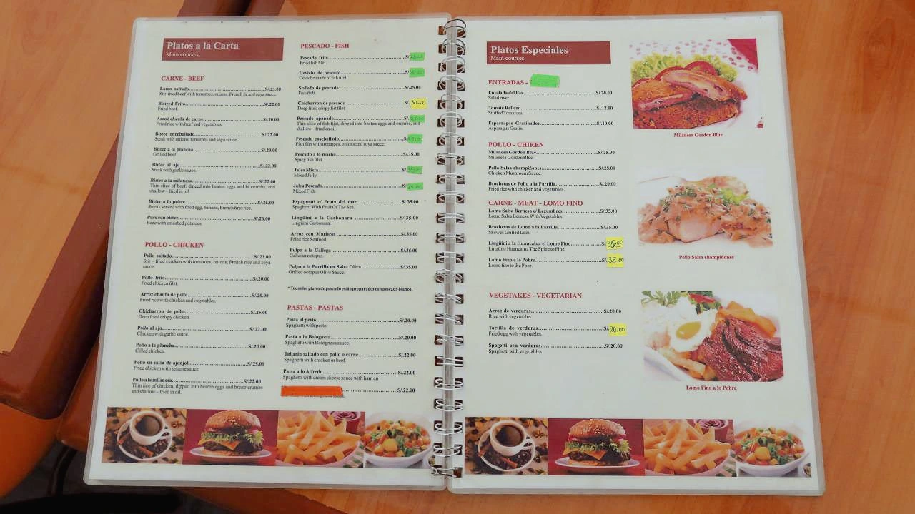첫 번째 계획은 '오아시스 주변에서 식사하기'. 무엇을 먹어야 할지 어디가 맛있는 집인지 사전조사가 없었기에 우리는 주변의 식당들을 훑어보기로 했다. 그러던 중 발견된 '영어 메뉴'를 제공하는 레스토랑! '페루에 가면 로모 살 타도를 먹자'라고 약속했던 것이 떠올라 메뉴 이름에 '로모 살타도'가 있고 영어가 잔뜩 쓰여있어 안심되는 레스토랑으로 결정했다.