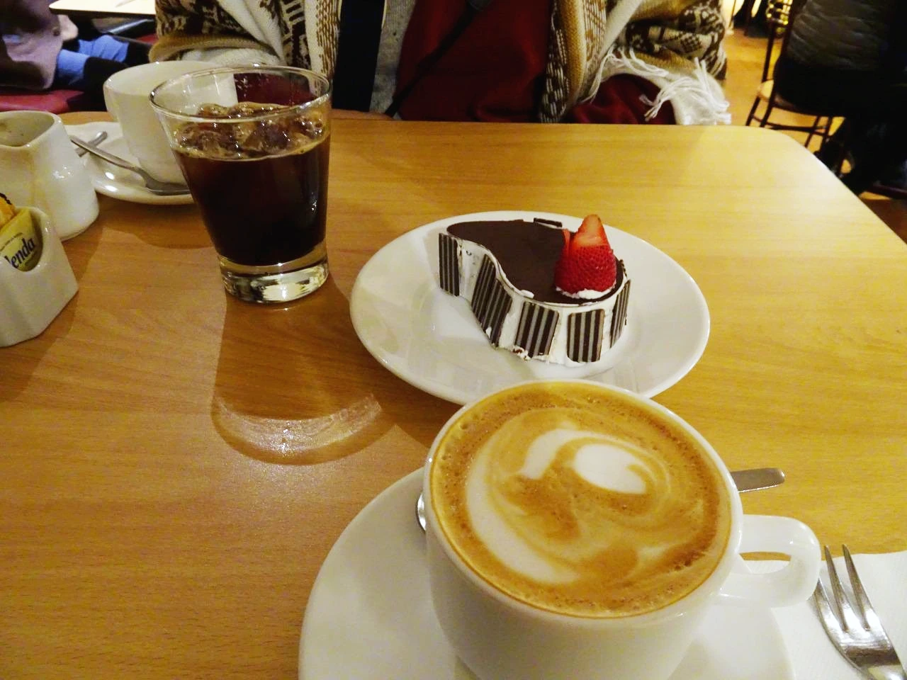쿠스코의 새파란 하늘을 보며 커피를 마시기 좋은 케이크집으로 알려져 있지만 우리가 도착한 시각은 저녁. 추석 즈음이면 한국도 저녁시간에 조금 선선해지기 마련인데 페루는 우리와 기후가 다른 데다가 쿠스코가 워낙 고지대라서 그런지 밤공기는 꽤 쌀쌀한 편이었다. 멋내기용으로 산 판초를 보온용으로 껴입은 우리는 카페로 들어가 겨우 한 테이블 남아있던 자리를 잡고 디자인이 독특했던 미니 케이크 하나와 따듯한 라테 하나, 아이스커피 하나를 주문했다. 그리고 얼죽아인 나는 그곳에서 페루 사람들이나 유럽 사람들 -손님의 90%가 외국인이었는데 대다수 유럽인의 외모였다- 은 아이스커피를 먹지 않는 모양이라고 생각했다. 아이스커피를 시켰는데 아이스(얼음컵)와 따듯한 커피가 나오다니요?