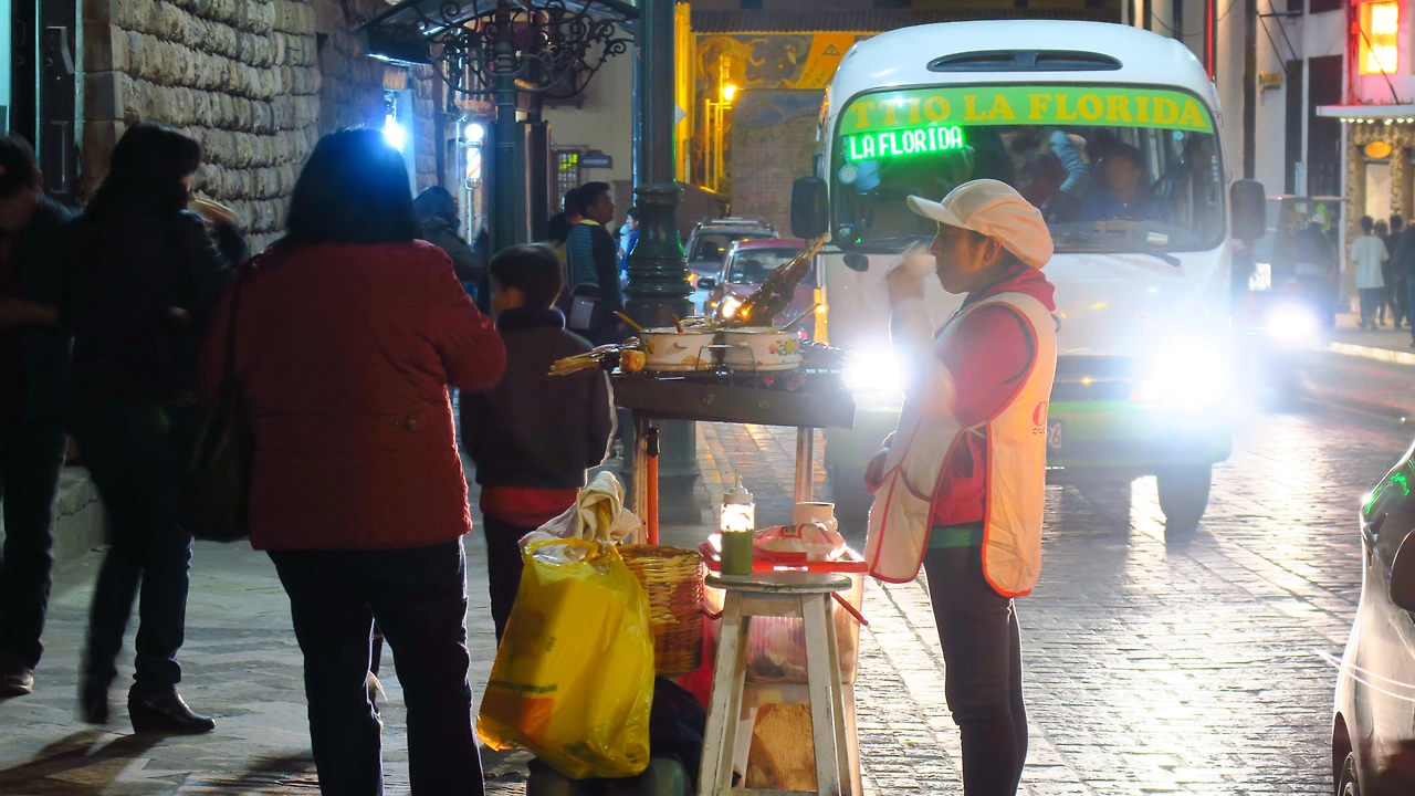 밤늦게 고기 꼬치를 파는 쿠스코 노점