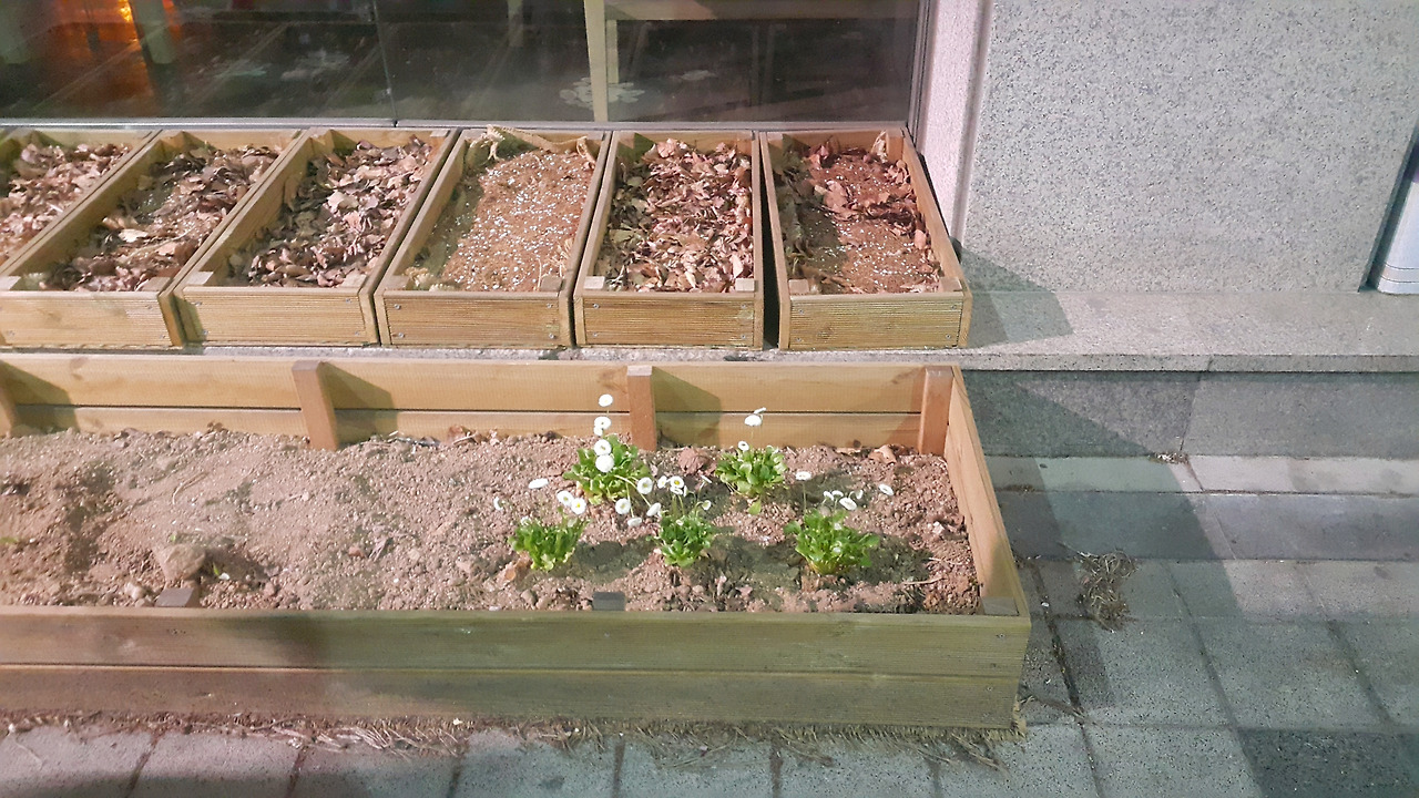 집에 가는 길에 동네 술집 화단에 데이지를 심었어.
