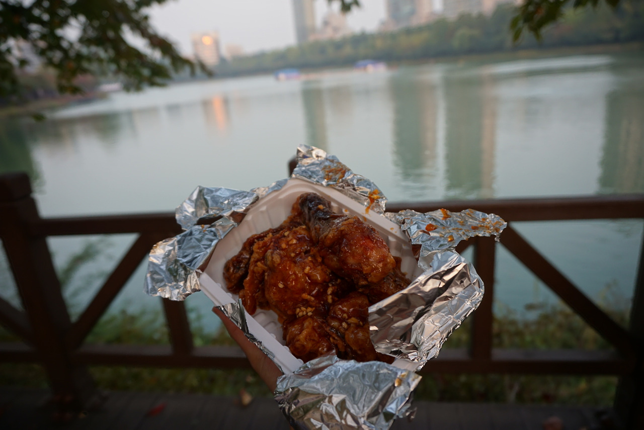 시즌권까지 끊었던 너와 달리, 고소공포증이 있는 나에게 놀이동산은 단체 소풍 때나 가던 곳이었으니까. 왜 였을까. 생동감 있는 분위기를 느껴보고 싶기도 했고, 츄러스가 먹고 싶었던 것 같기도 해. 우리는 석촌 호수를 걷다가 벤치에 앉아서 닭강정을 먹고는 야간 개장에 맞춰 그곳으로 향했어.