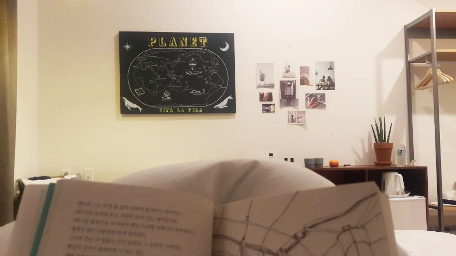 이 곳의 사진을 보자마자 하루라도 꼭 이곳에 머물러야겠다고 생각했어. 밤에 도착한 우리는 잠깐 내린 비가 불러낸 풀내음을 가득 맡으면서 숙소 문을 열었어. 짐을 풀고 노곤함을 씻어버리고 나니 부스럭 거리는 이불의 편안함이 느껴졌어. 풀벌레 소리가 어렴풋이 났지만 나는 음악을 틀었고, 가져온 책을 꺼내 들었어. 이 곳에서 꼭 책을 읽고 싶었거든.