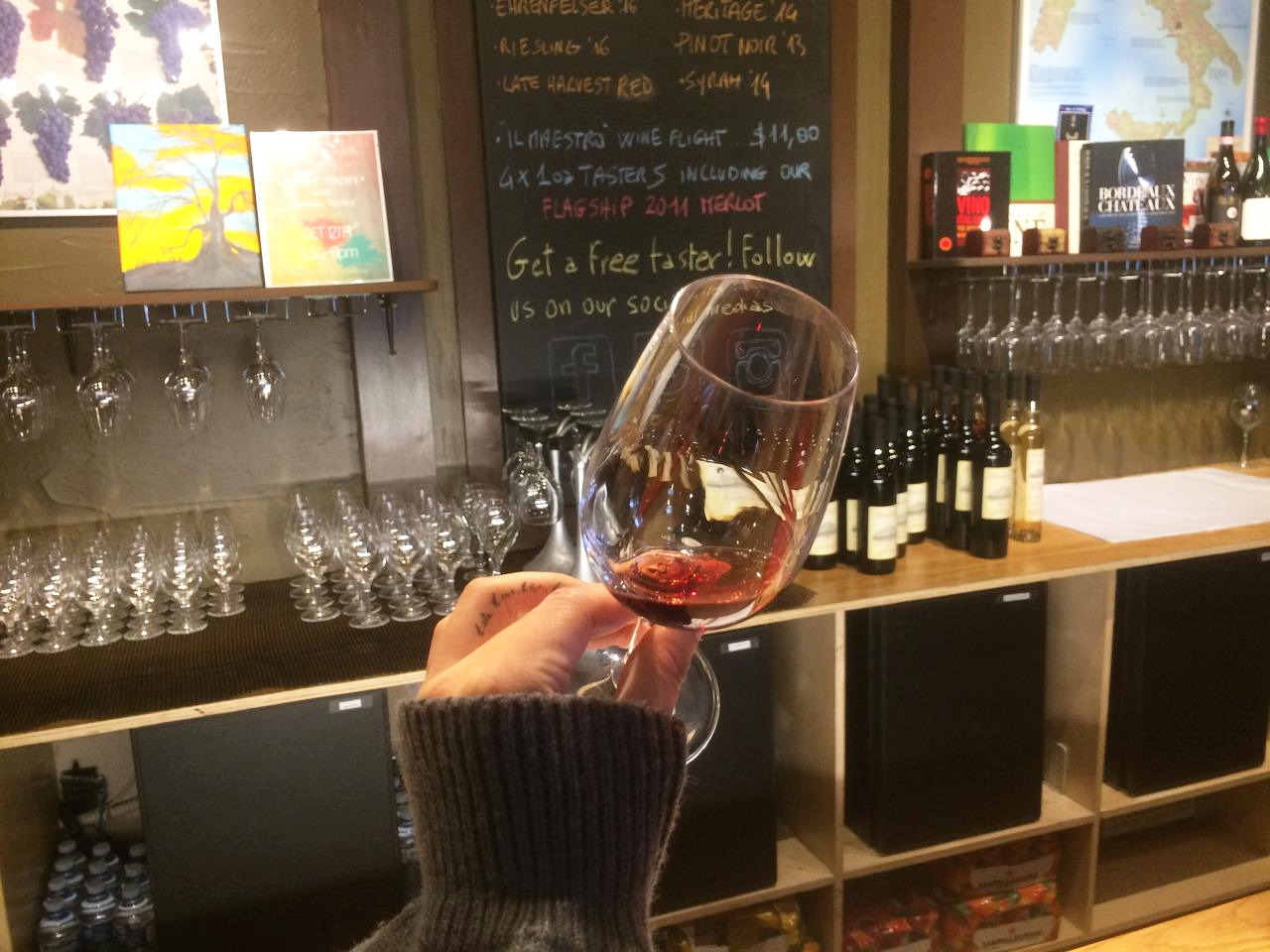 이 곳을 방문한 날은 비가 올듯한 흐린 날씨의 늦은 가을날이었다. 수확철이 지난 후였기에 밭에는 장식용으로 남겨둔 포도 몇 송이만 남아있었다. 나무 건물의 와이너리는 아담했지만, 세련되게 꾸며져 있었다. 와인은 화이트 와인 1개, 레드 와인 2개를 시음했다. 마지막으로 시음한 까베르네 쇼비뇽의 끝 맛이 생각보다 진했던 기억이 난다. 선반에 장식된 그림이 예쁘다고 이야기하니, 소믈리에가 직접 그린 그림이라고 했다. 이 와이너리에서는 정기적으로 와인을 마시면서 페인팅을 하는 클래스를 여는데 본인도 매주 참석하고 있다고 이야기해주었다. 그리고 와인을 마시면 그림이 훨씬 더 예술적으로 그려진다고 덧붙였다. 설명만 들어도 그 클래스의 분위기를 상상할 수 있었다. 나중에는 캔버스에 뿌려진 빨간 액체가 물감인지 와인인지 헷갈리는 상황이 올 것이 분명하다.