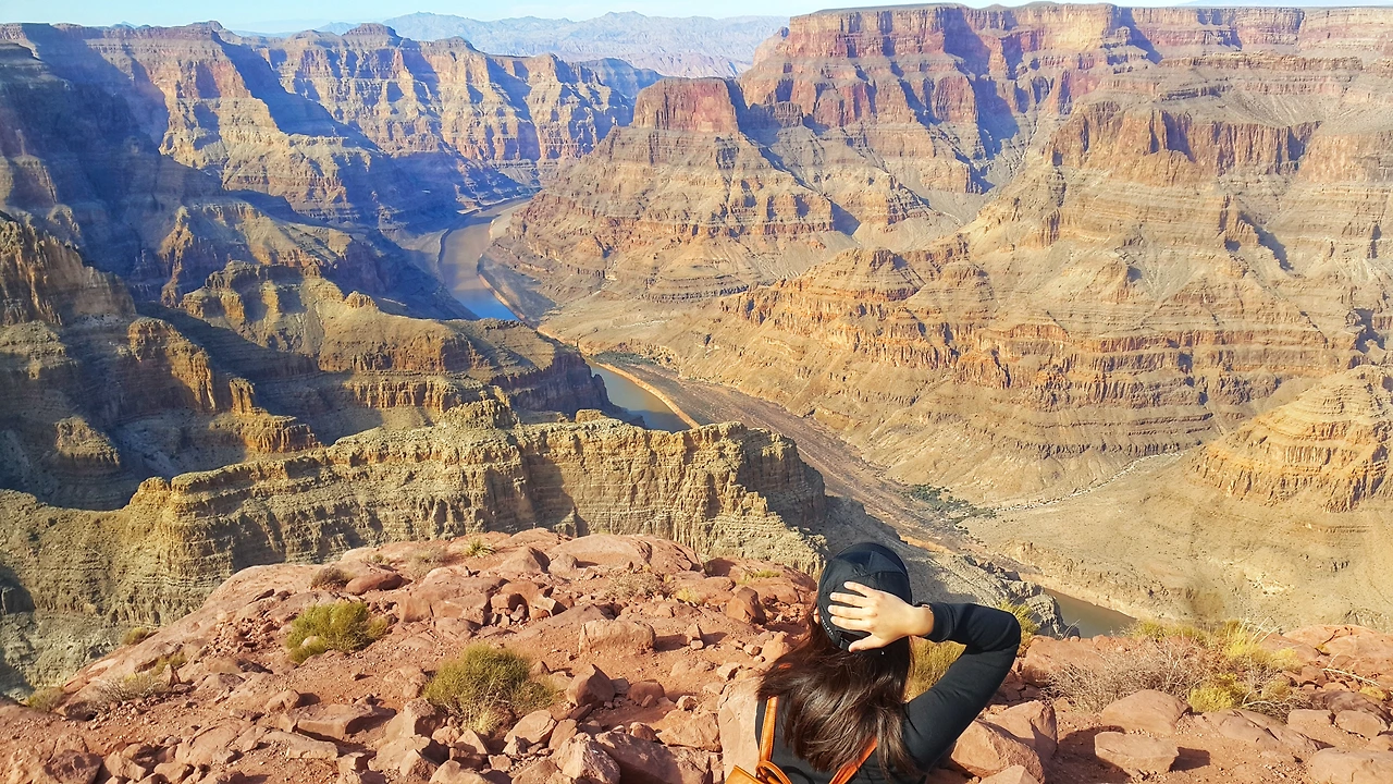 라스베이거스에서 3시간 반 정도를 달려 그랜드 캐니언 국립공원에 도착했다. 라스베이거스가 있는 네바다 주에서 애리조나 주로 지역이 바뀌었다고 시간이 한 시간 느려졌다. 공원 내에는 차를 가지고 들어갈 수가 없다고 투어 가이드가 입구에서 갑자기 인사를 한다. 각자 일행들과 무료 셔틀버스를 타고 자유롭게 포인트 3곳을 구경한 뒤, 1시 반에 버스에서 만나자고 덧붙인다. 이런 나는 혼잔데, 사진은 누가 찍어주지.