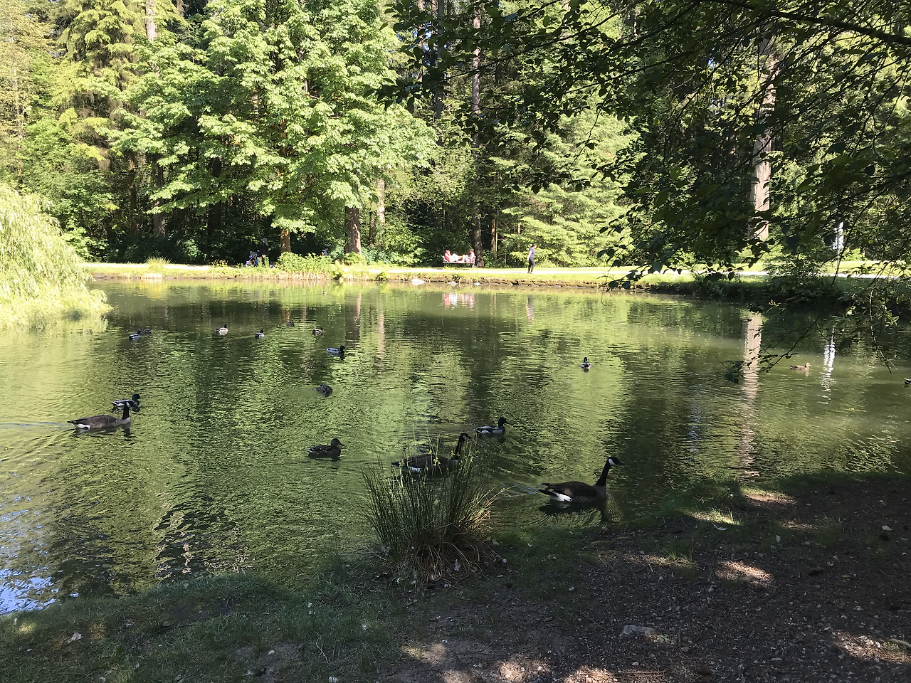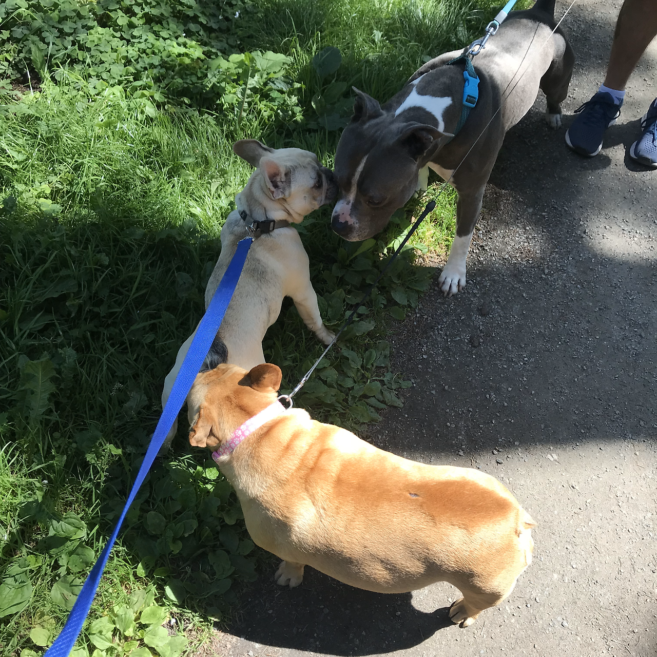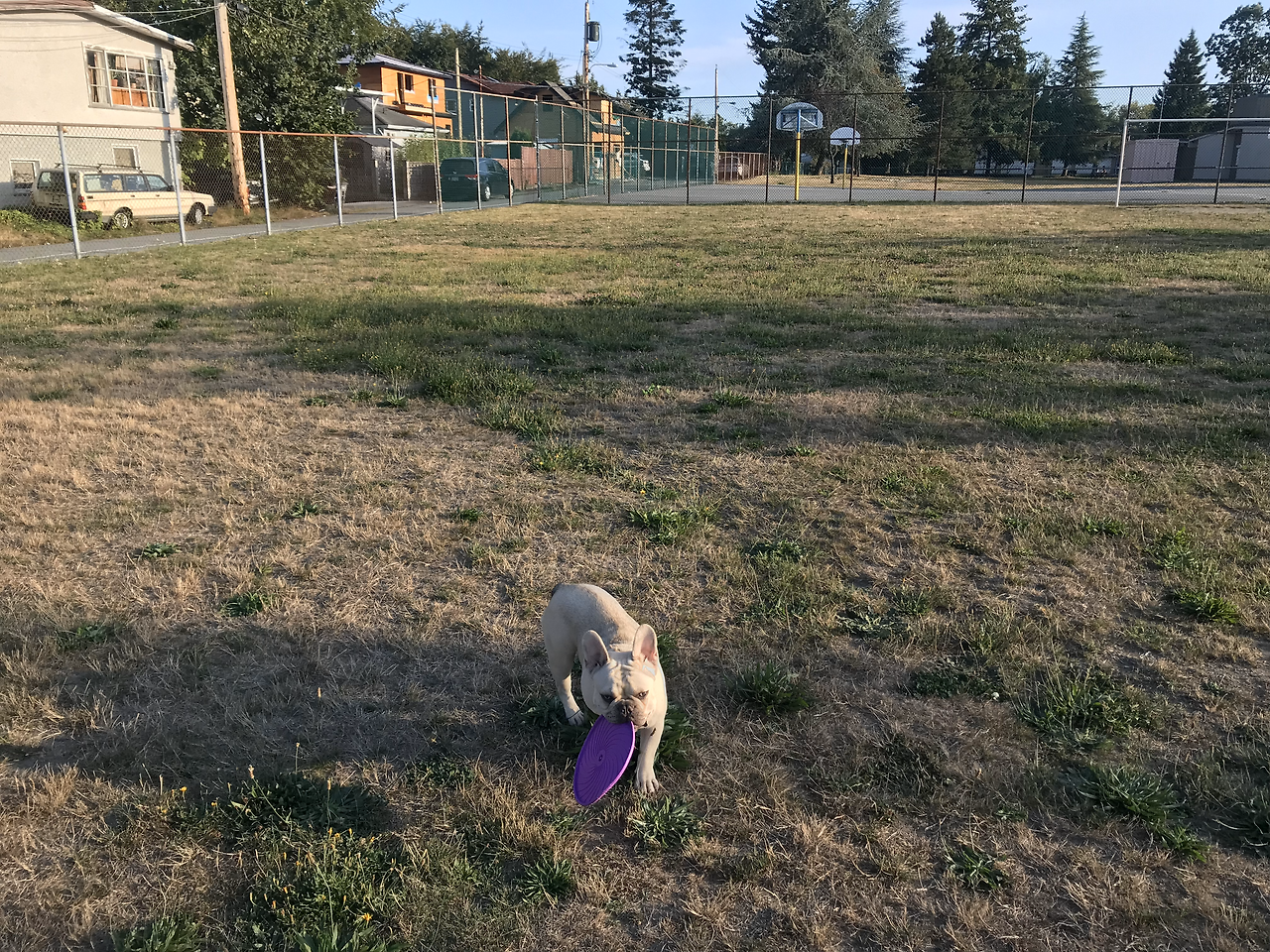 산책은 집에서 걸어서 5분 정도 거리에 있는 커다란 공원으로 간다. 면적이 86.4-hectare 나 되는 이 공원은 육상 트랙과 축구장이 있는 스타디움은 기본이고, BBQ가 가능한 피크닉 구역, 여름에만 오픈하는 실외 수영장, 테니스와 배드민턴 코드, 피치 앤 퍼트가 가능한 아마추어 콜프 코스도 있다. 공원에 가면 곳곳의 다람쥐와 호숫가의 오리들, 산책 나온 다른 강아지들이 반겨준다. 갖갖 종류의 나무, 꽃, 풀 냄새를 맡으면서 산책을 하는 Burro는 쓰러져있는 나무 위에도 오르락내리락하면서 뛰어다니고, 나랑 같이 덤불에 열린 블루베리도 따먹는다. 밤에 하는 산책은 코요테나 라쿤이 활동하는 공원 대신 동네에 있는 초등학교 운동장으로 향한다. 여기서는 줄을 풀고 공 던져서 물어오기 놀이를 하면서 신나게 뛰어다니도록 해준다. 항상 4-5 마리의 다른 강아지들이 있기 때문에 퇴근하고 피곤한 내가 같이 뛰면서 놀아주지 않아도 친구들과 같이 꼬리물기도 하고 경주 달리기도 하면서 즐거운 시간을 보낸다.