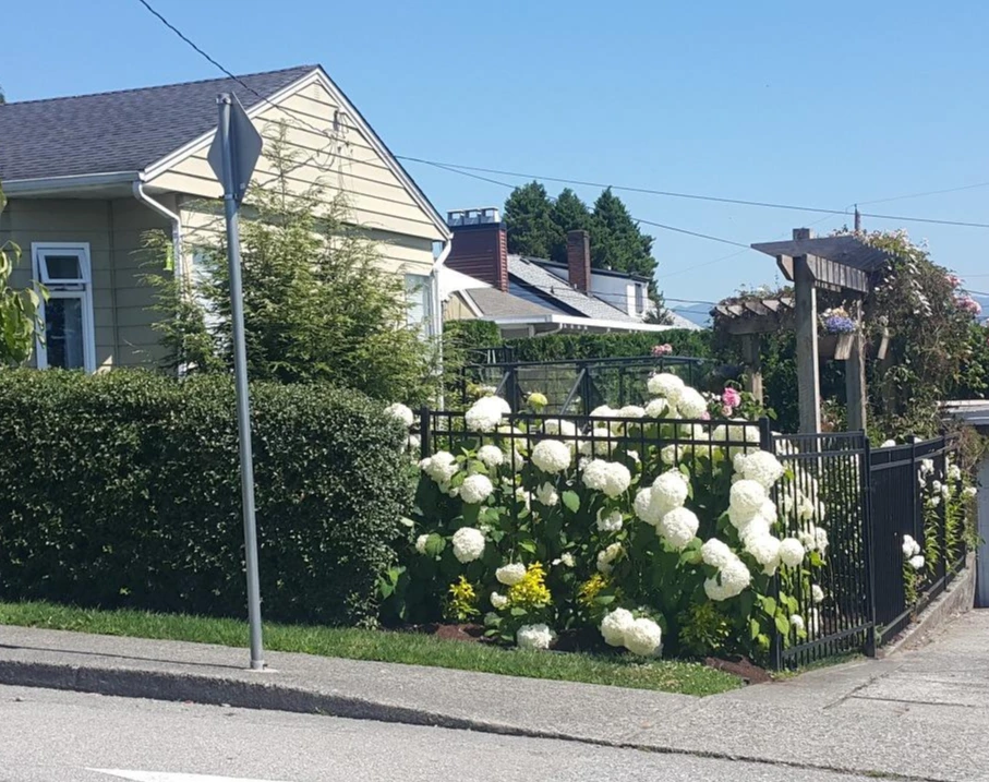 신기하다고 생각하는 것 중 하나는 모든 집들이 모양도 색깔로 조금씩 다 다르다는 것이다. 땅콩 주택 느낌이 나는 '레인 하우스'나 3층 정도 건물의 가로로 긴 아파트로 설명이 가능한 '타운 하우스' 같은 형태를 제외하고는 똑같이 생긴 집을 한 번도 본 적이 없다. 창문의 모양, 개수, 벽을 이루는 재료 등이 제각각이다. 이주민이 오기 전부터 이 땅에 살던 원주민들이 사는 집에는 창문에 독특한 색깔의 구조물이 있고, 중국 이민자들이 사는 집에는 빨간색과 금색으로 '복'이라는 한자가 쓰여있기도 한다. 똑같이 생긴 네모 아파트들 사이에서 동 호수가 아니면 구별하는 게 불가능한 서울의 집들과 참 대조된다. 외관 디자인을 제외하고도 모든 집들은 저마다의 특징을 가지고 있다. 이 중에서 내가 가장 좋아하는 집은 앞마당에 정원을 꾸며놓은 집이다. 아침에 출근하는 길에 여러 꽃들이 예쁘게 관리되어 있는 집을 지나가면 기분이 정말 좋아진다. 제주도에 내려가서 봤던 수국이 색색깔로 담장을 타고 올라 만발해있는 것도 흔히 보이고, 식물원에 가야지 볼 수 있을 것 같은 희귀한 꽃도 집 앞에 아무렇지 않게 피어있기도 한다.