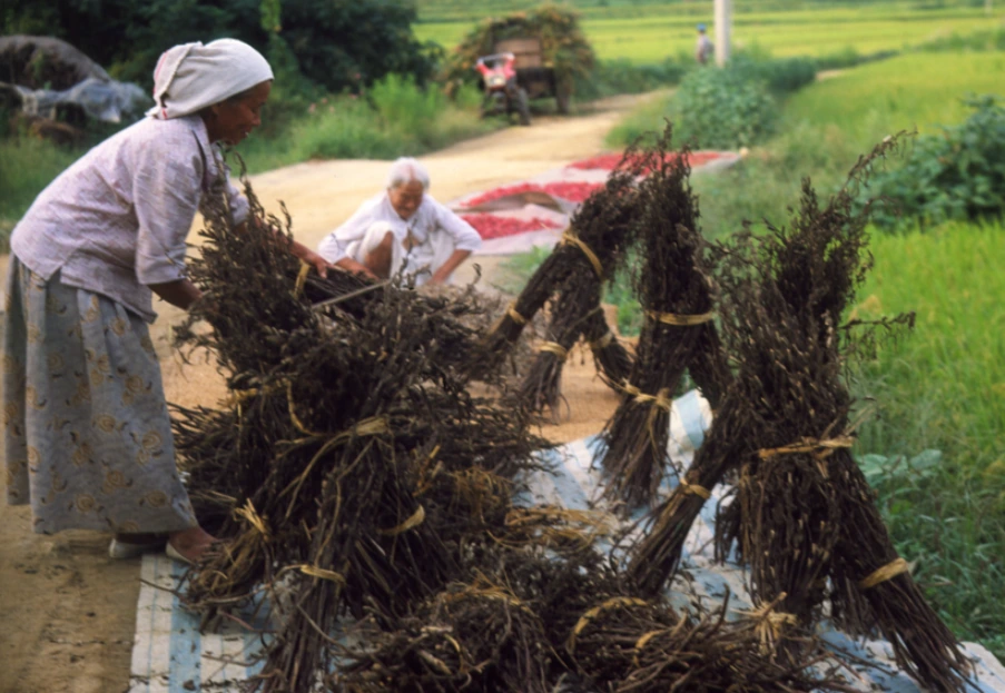 참깨를 털면서