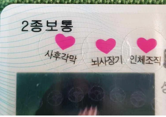 여러 날 뒤에 사전 연명의료 의향서 등록증과 함께 운전면허증에 붙이는 하트 세 개가 도착했다.