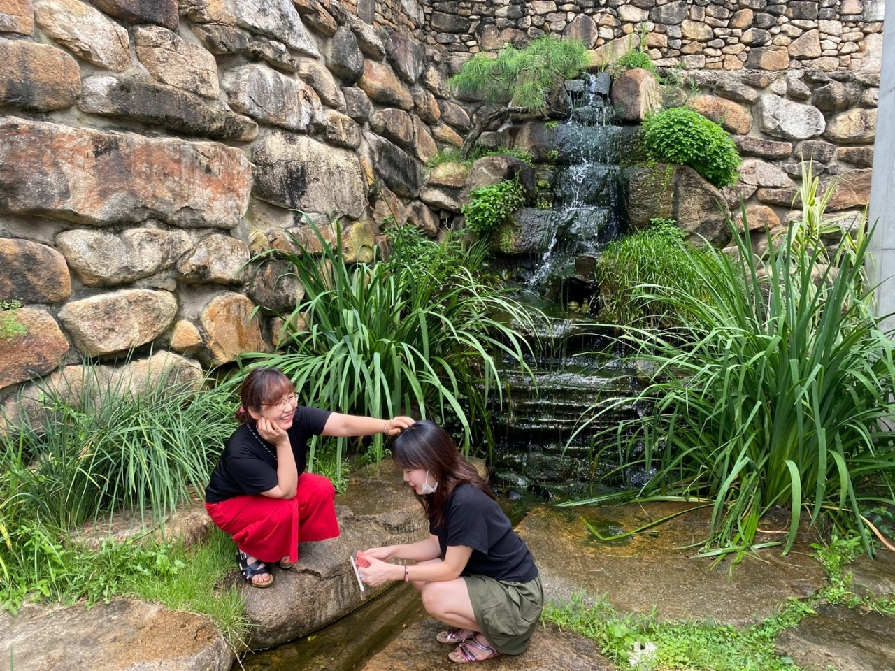 머리를 쓰다듬기도 한다.