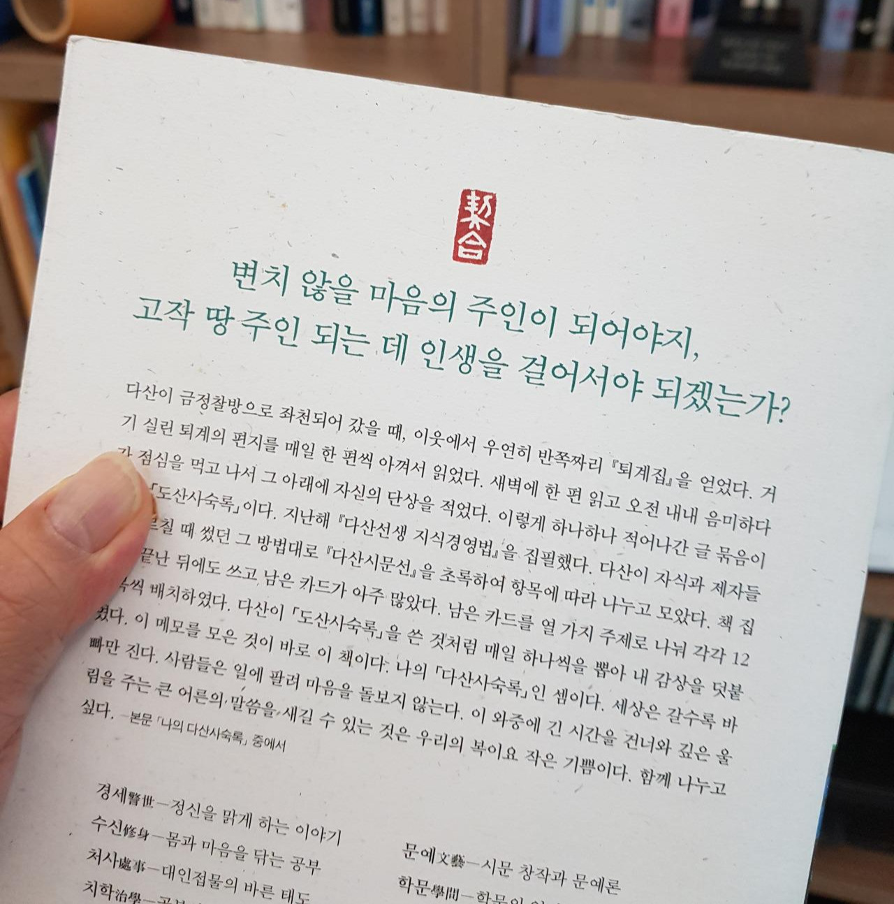 다산의 낮은 목소리를 청상(淸賞) 해 보자.