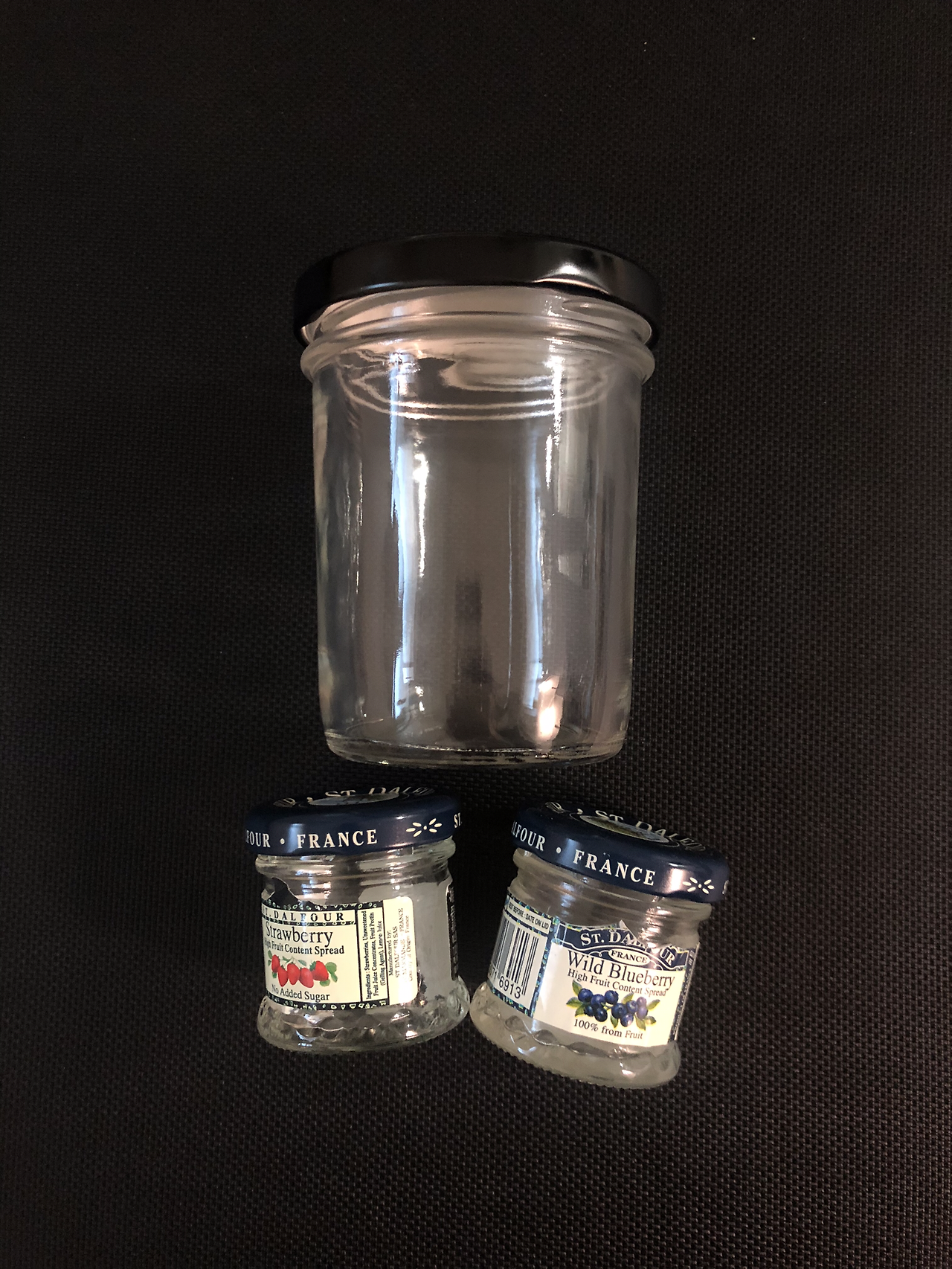 잼이 담겨있던 작은 유리병 두 개를
