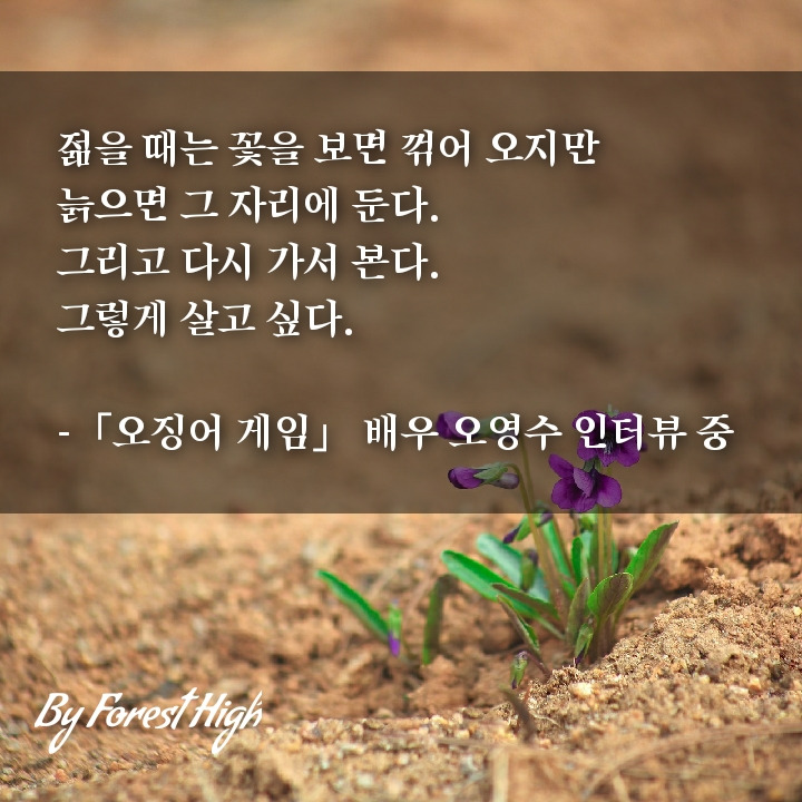 나이 듦을 생각한다. 노인이 판치는 세상은 안타깝고, 노욕과 노탐의 현장을 목도할 땐 우울하다. 오영수 배우는 꽃을 꺾어 가는 대신 더 많은 사람이 보고 즐기기를 선택한다. 추가로 드는 시간과 수고는 자신이 감당할 몫으로 두고. 이런 것이 '나이 듦의 지혜'가 아닐까 생각해 본다.